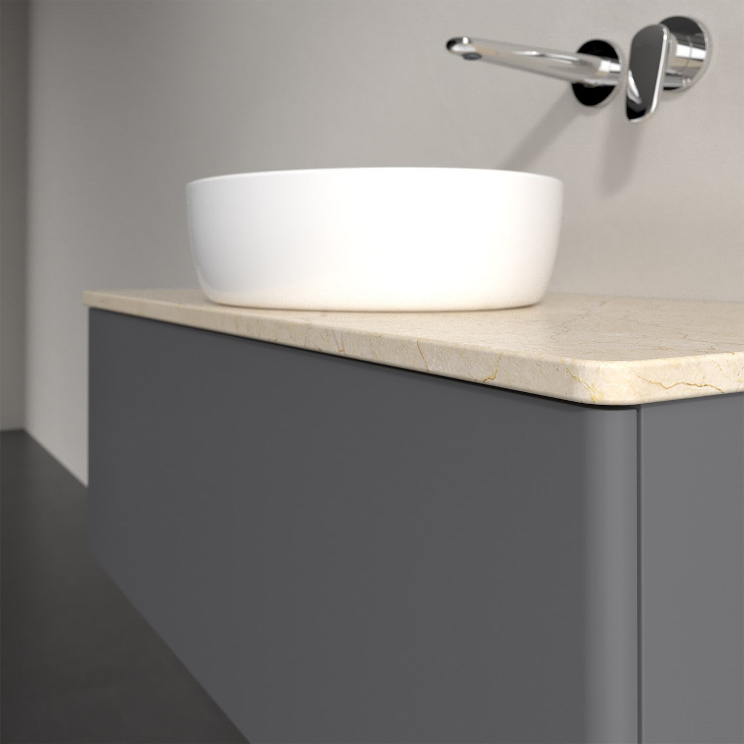 Für diesen Waschbeckenunterschrank stehen Ihnen Aufsatzwaschtische aus verschiedenen Serien zur Verfügung (siehe "Passliste" unter Downloads). Ein ausgewähltes Beispiel finden Sie im Zubehör. Den Waschtisch bitte separat mitbestellen.