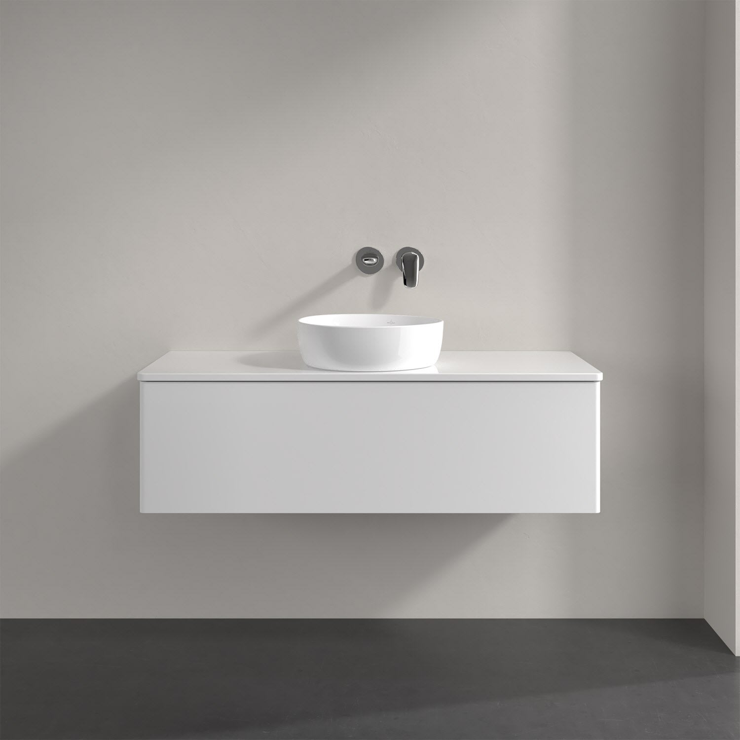 Villeroy & Boch Antao Waschbeckenunterschrank, 120 x 36 cm, 1 Auszug, Front ohne Struktur, ohne Hahnloch, für Waschtisch mittig