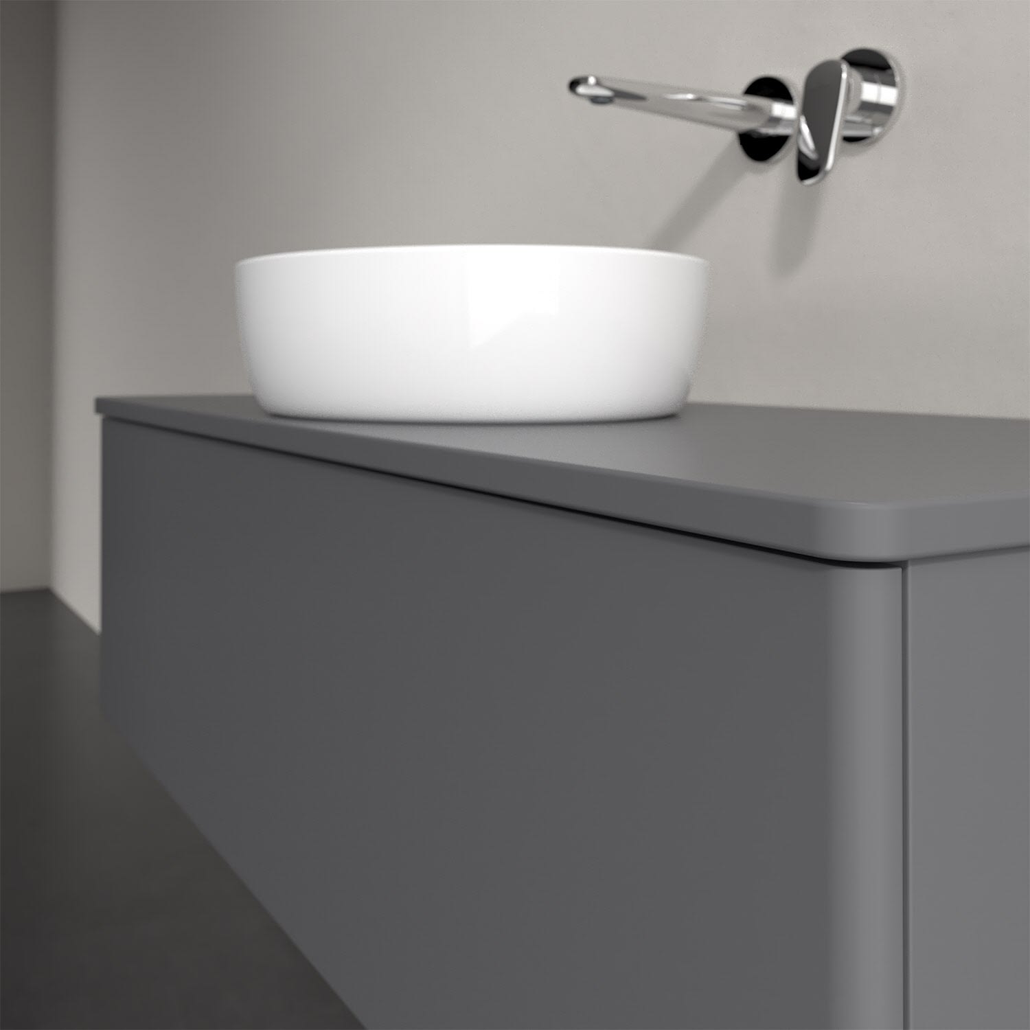 Der wandhängende Antao Waschtischunterschrank von Villeroy & Boch bietet nicht nur jede Menge Stauraum – er ist dank seines naturinspirierten Designs mit seinen abgerundeten Kanten auch noch besonders stilvoll und schafft eine gemütliche Atmosphäre im Badezimmer. Auf der Waschtischplatte bietet sich rechts und links neben dem Waschtisch viel Platz für Zahnbürstenbecher oder Seifenspender. Ein extra hoher Auszug bietet viel Platz, um alles Notwendige zu verstauen und Ordnung zu halten. Öffnen lässt er sich durch leichten Druck auf die grifflose Front. Dank Vollauszug hat man immer alles im Blick und der Antirutschboden verhindert ein Umfallen oder Verrutschen der Gegenstände. Einfach clever! Für eine besonders leichte Pflege sorgt die mehrschichtig deckend lackierte Oberfläche.