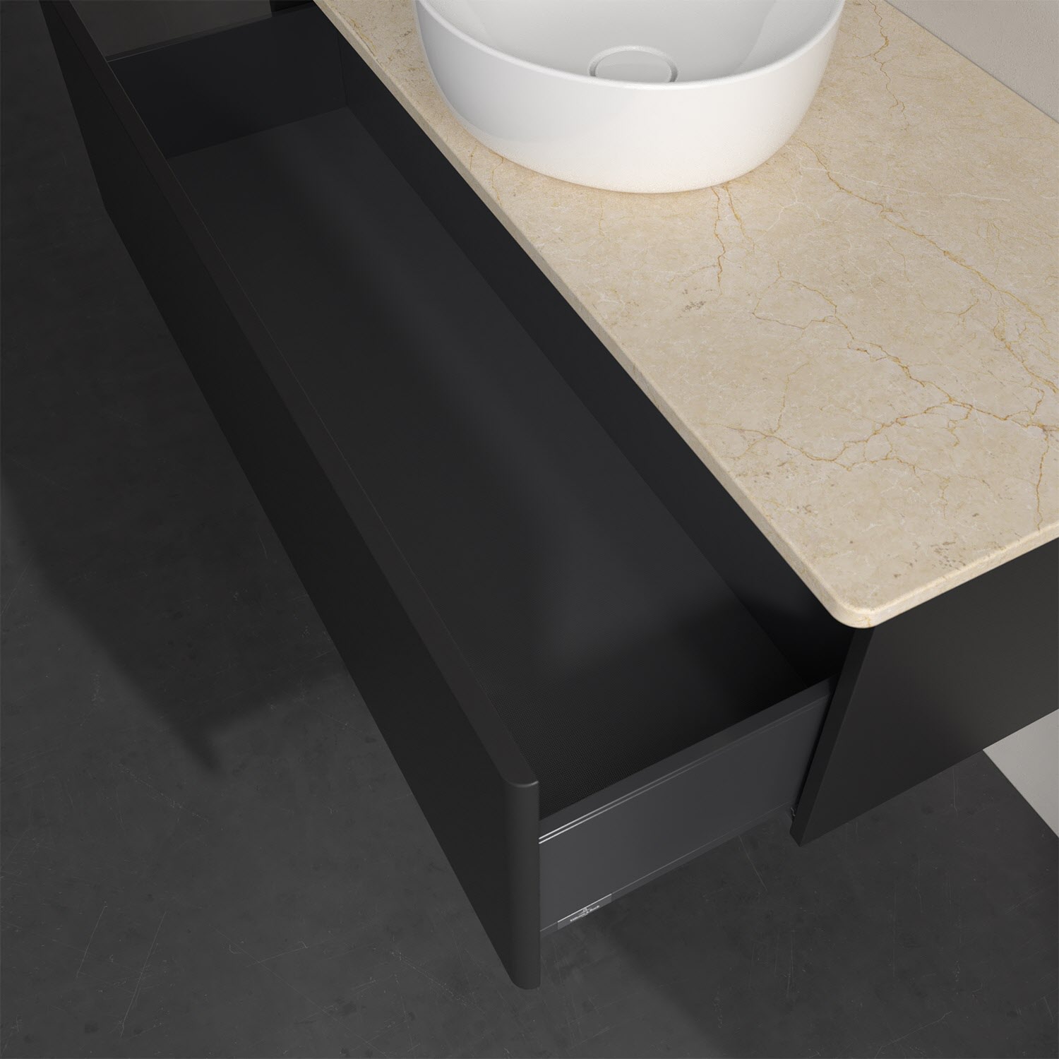 - kein Umfallen oder Verrutschen von Pflegeprodukten in den Schubladen dank rutschhemmendem Boden