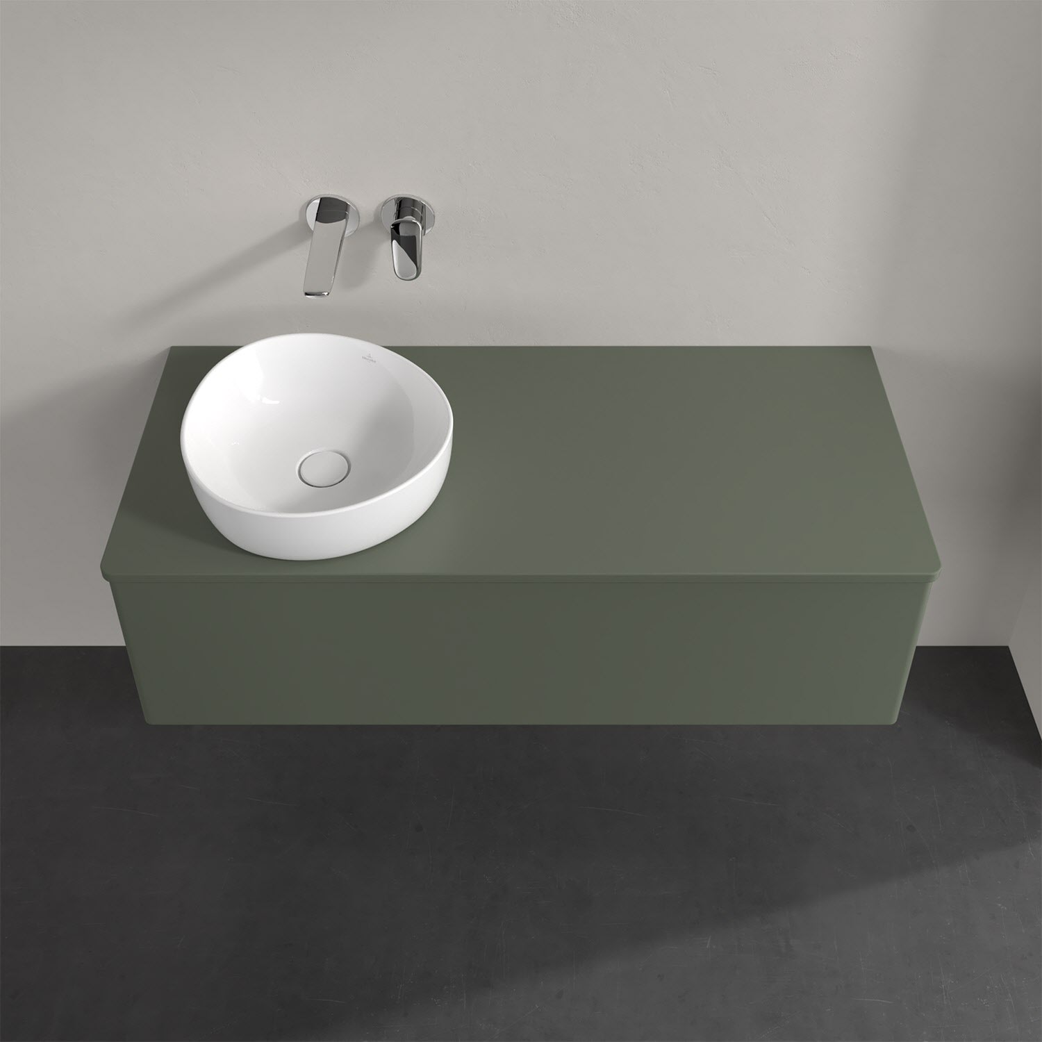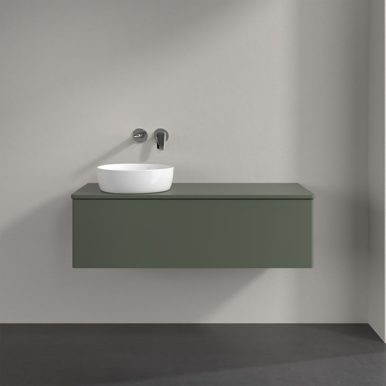 Villeroy & Boch Antao Waschbeckenunterschrank, 120 x 36 cm, 1 Auszug, Front ohne Struktur, ohne Hahnloch, für Waschtisch links