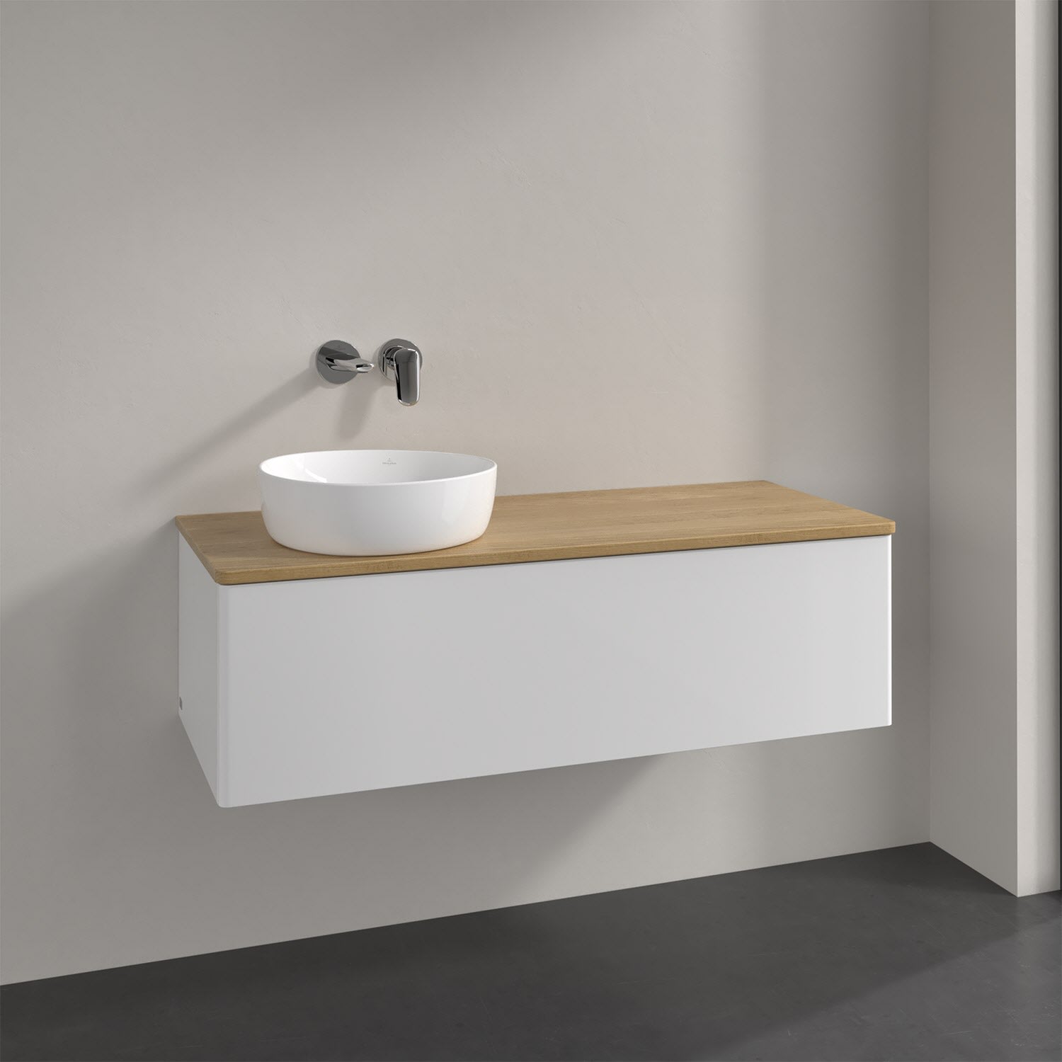 Villeroy & Boch Antao Waschbeckenunterschrank, 120 x 36 cm, 1 Auszug, Front ohne Struktur, ohne Hahnloch, für Waschtisch links