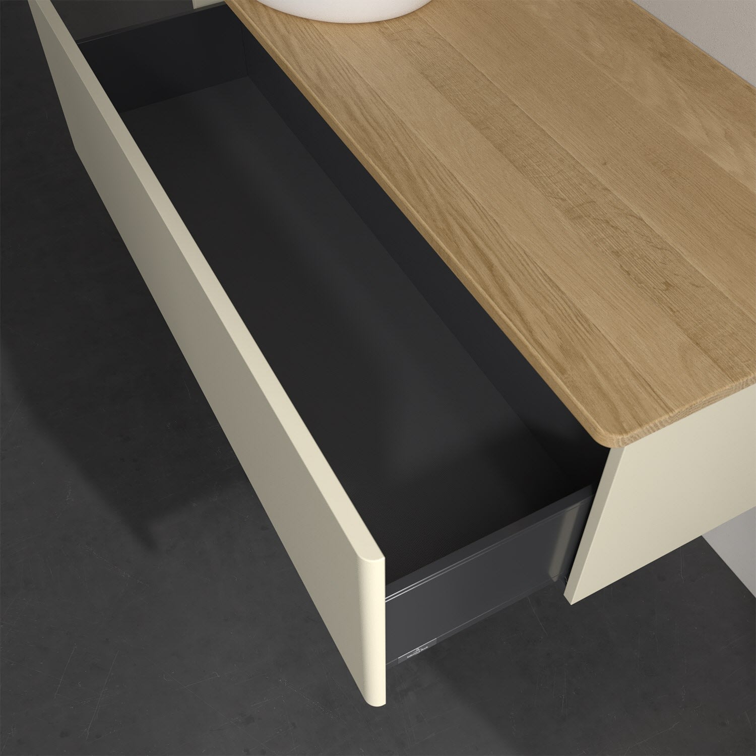 - kein Umfallen oder Verrutschen von Pflegeprodukten in den Schubladen dank rutschhemmendem Boden