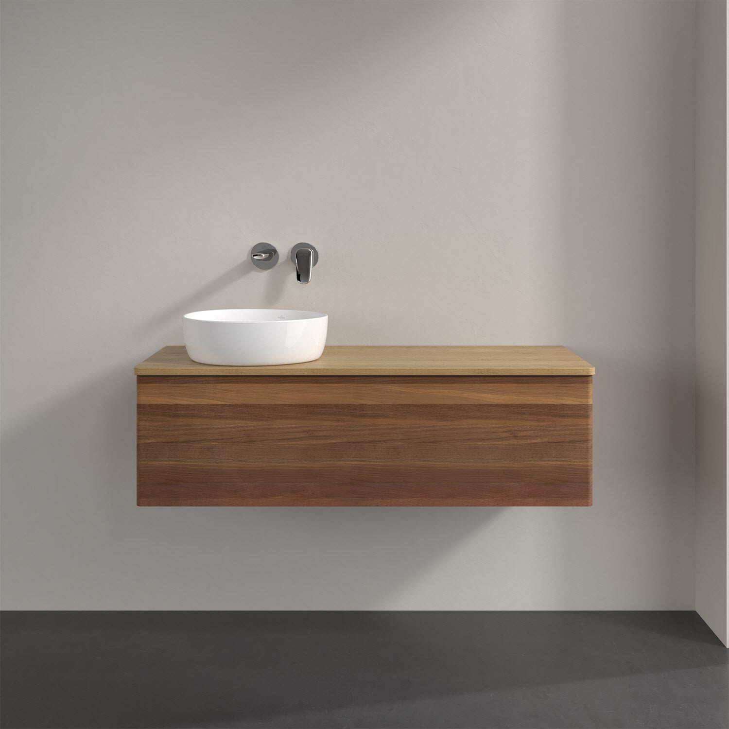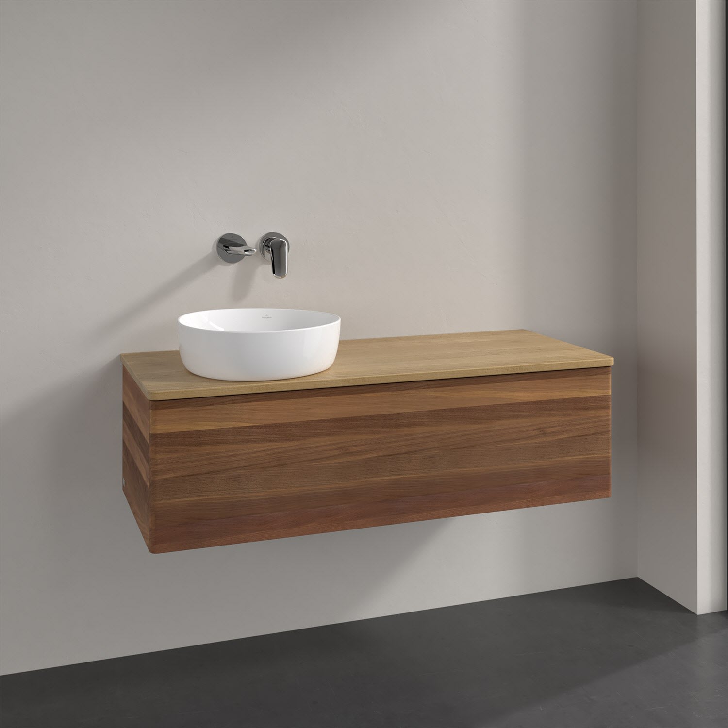 Villeroy & Boch Antao Waschbeckenunterschrank, 120 x 36 cm, 1 Auszug, Front ohne Struktur, ohne Hahnloch, für Waschtisch links