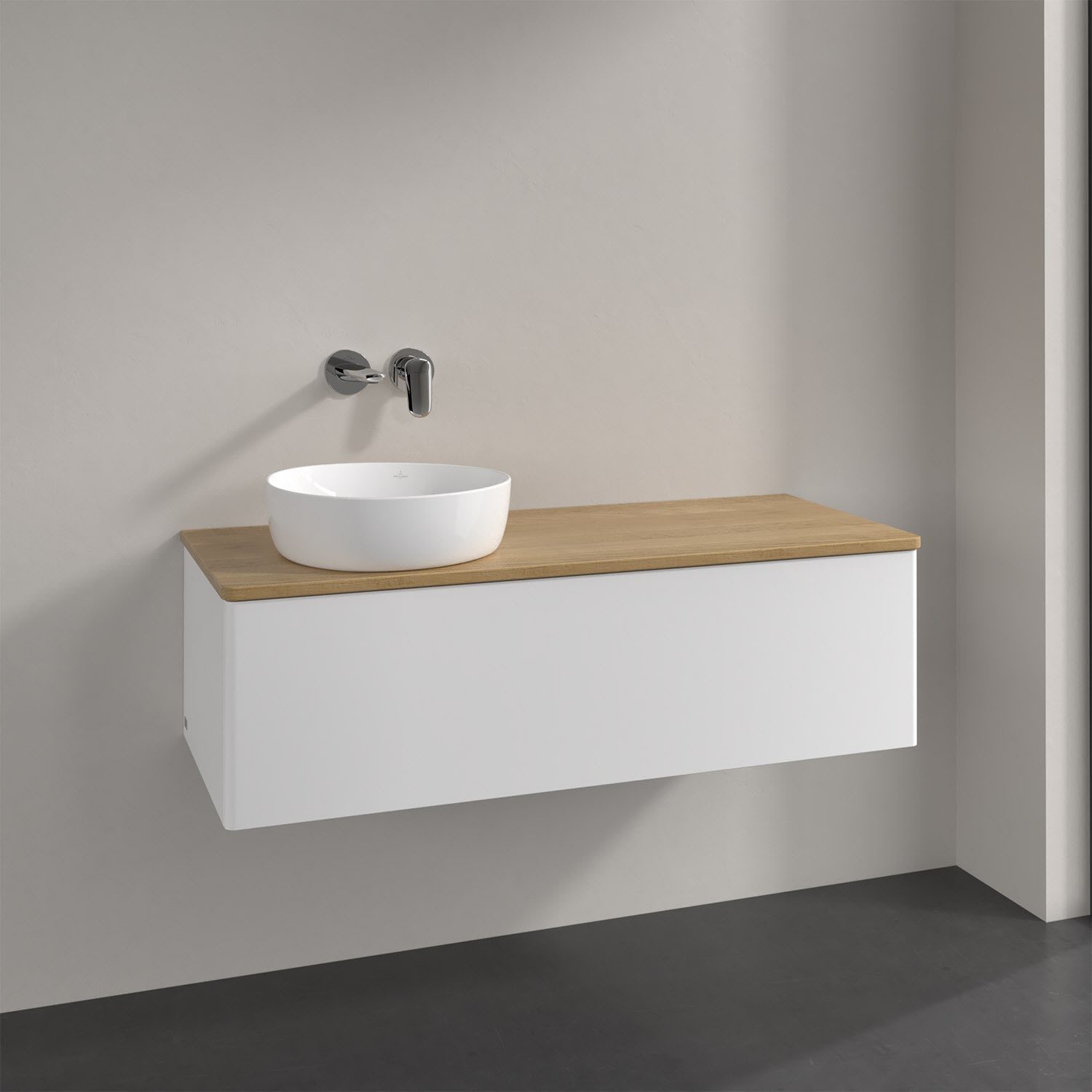Villeroy & Boch Antao Waschbeckenunterschrank, 120 x 36 cm, 1 Auszug, Front ohne Struktur, ohne Hahnloch, für Waschtisch links
