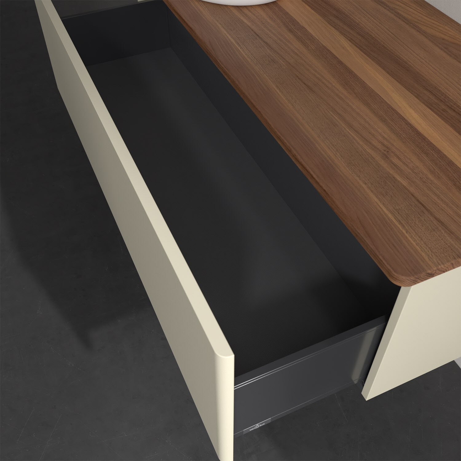- kein Umfallen oder Verrutschen von Pflegeprodukten in den Schubladen dank rutschhemmendem Boden