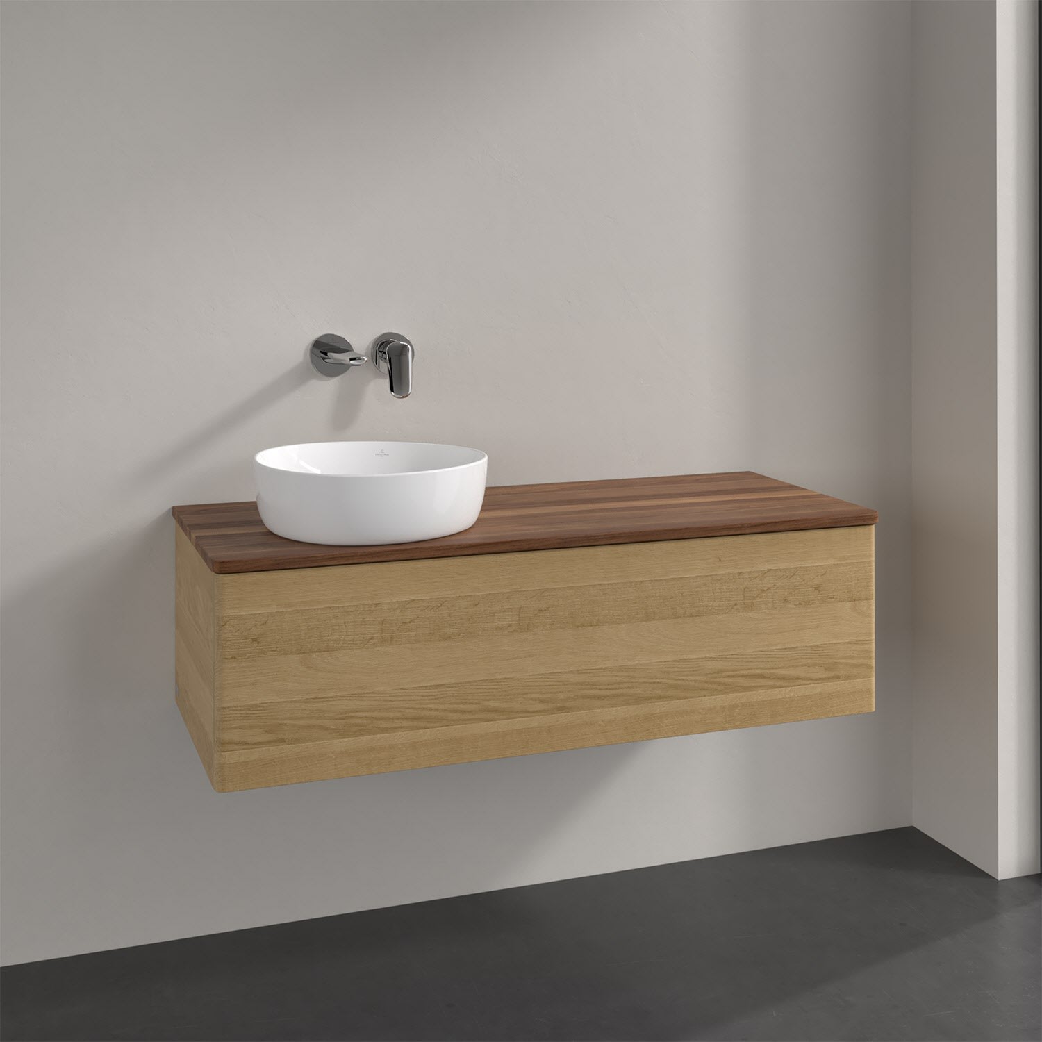 Villeroy & Boch Antao Waschbeckenunterschrank, 120 x 36 cm, 1 Auszug, Front ohne Struktur, ohne Hahnloch, für Waschtisch links