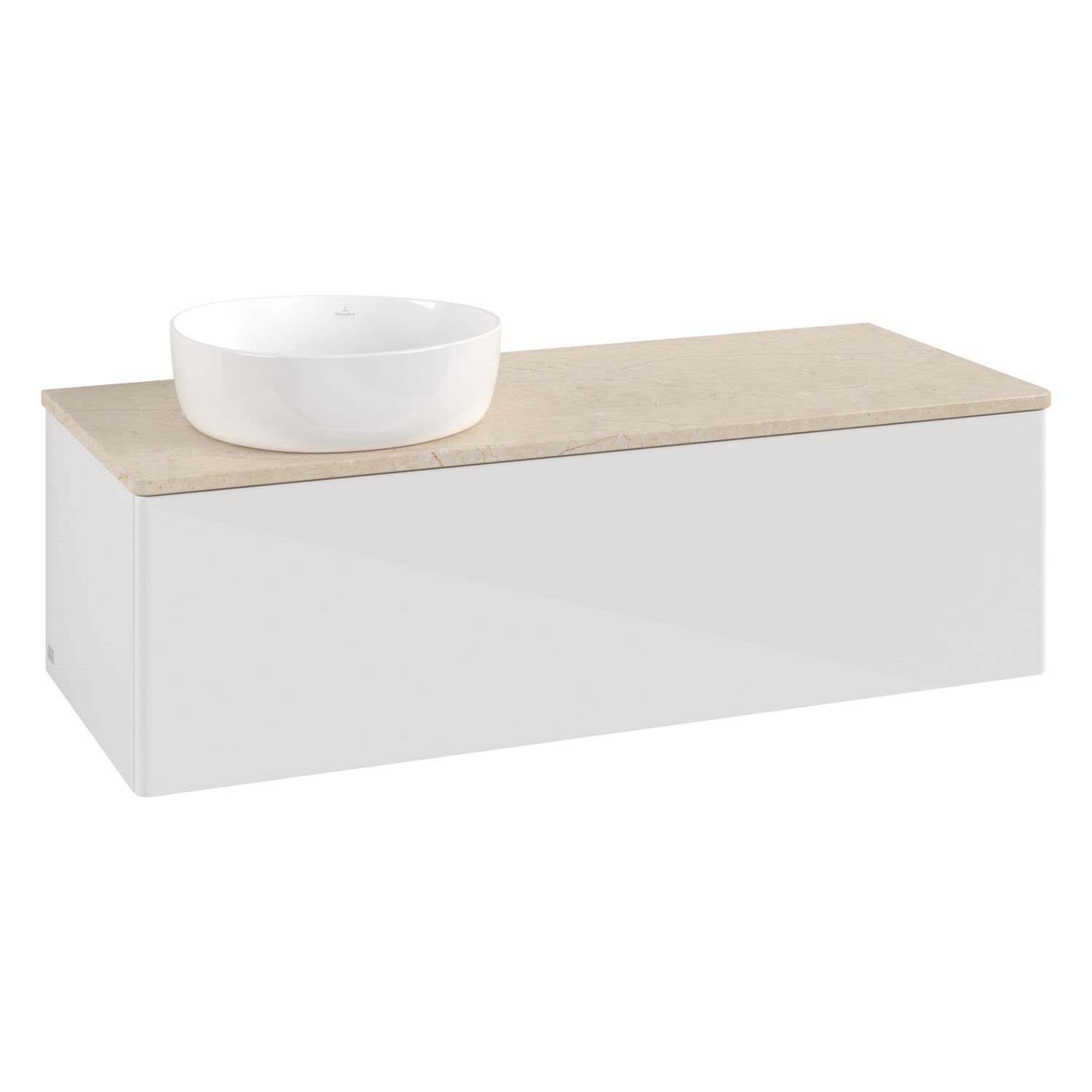 Villeroy & Boch Antao Waschbeckenunterschrank, 120 x 36 cm, 1 Auszug, Front ohne Struktur, ohne Hahnloch, für Waschtisch links