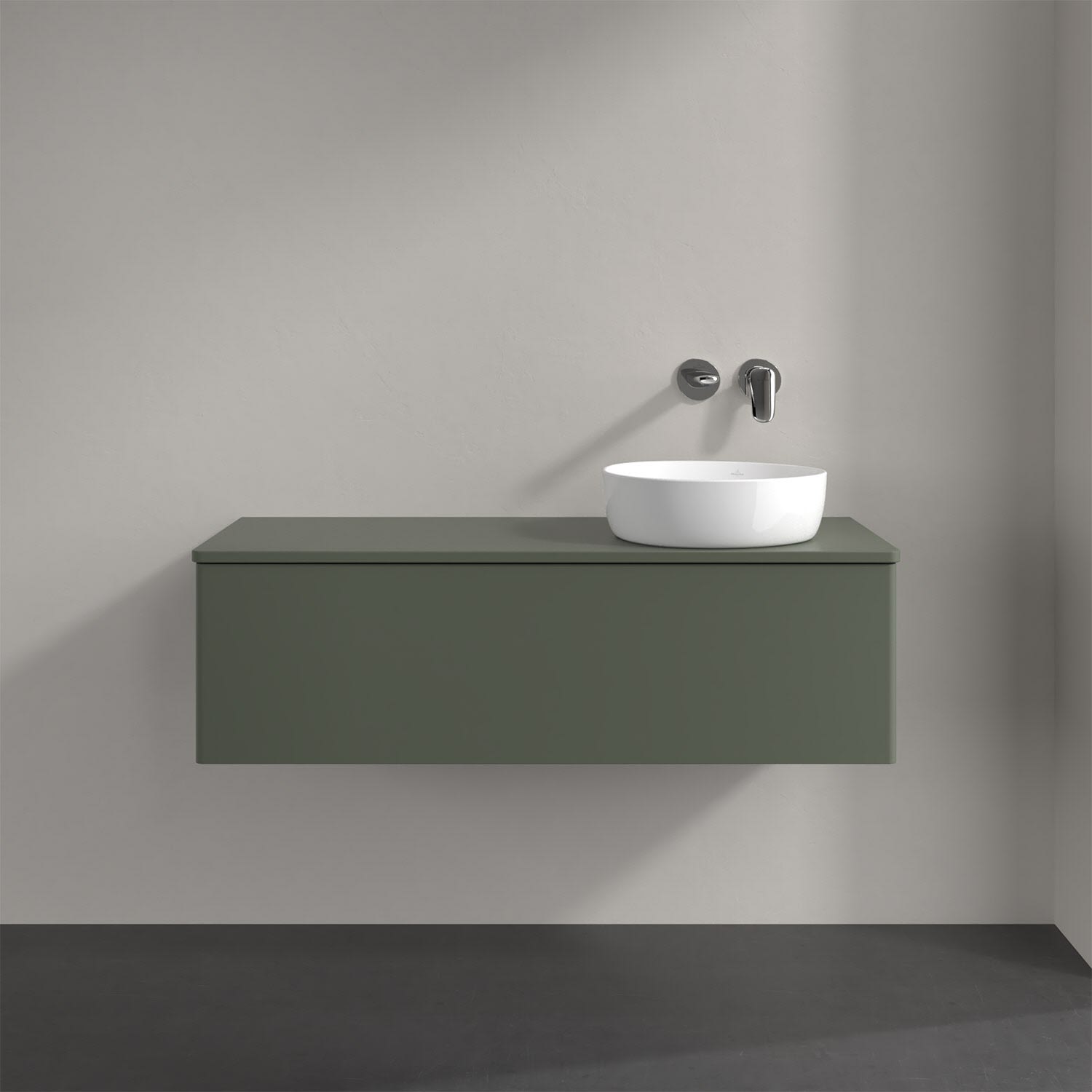 Villeroy & Boch Antao Waschbeckenunterschrank, 120 x 36 cm, 1 Auszug, Front ohne Struktur, ohne Hahnloch, für Waschtisch rechts