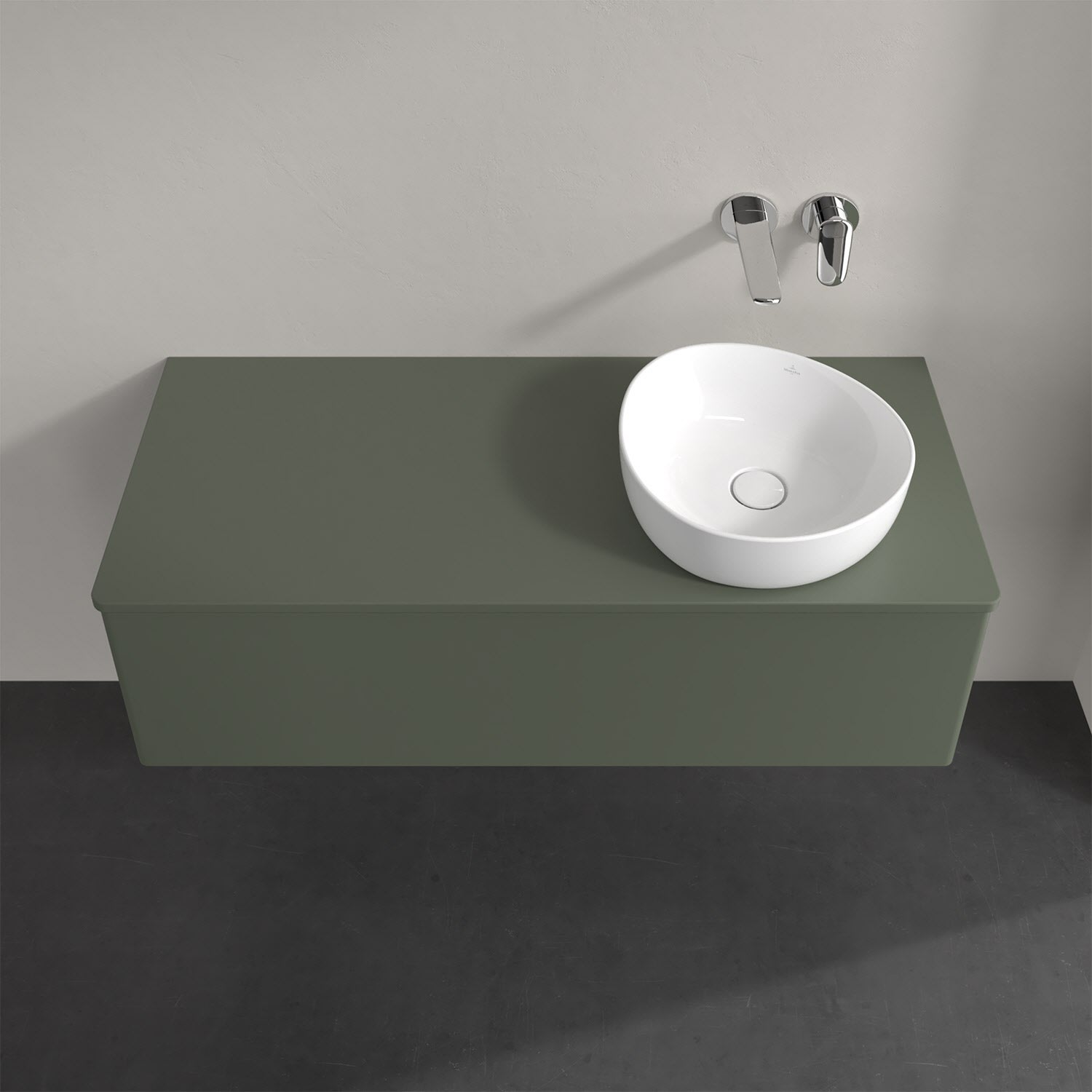 Für diesen Waschbeckenunterschrank stehen Ihnen Aufsatzwaschtische aus verschiedenen Serien zur Verfügung (siehe "Passliste" unter Downloads). Ein ausgewähltes Beispiel finden Sie im Zubehör. Den Waschtisch bitte separat mitbestellen.