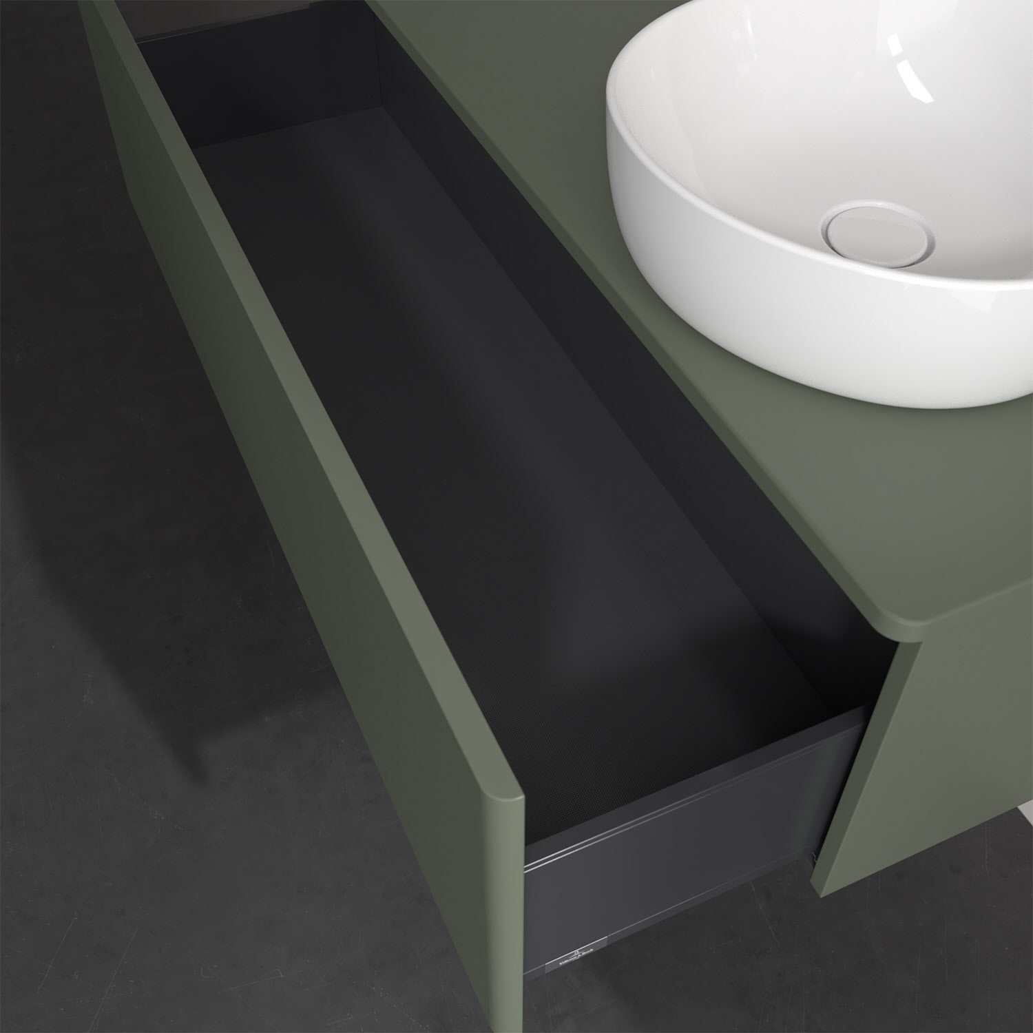 Der wandhängende Antao Waschtischunterschrank von Villeroy & Boch bietet nicht nur jede Menge Stauraum – er ist dank seines naturinspirierten Designs mit seinen abgerundeten Kanten auch noch besonders stilvoll und schafft eine gemütliche Atmosphäre im Badezimmer. Auf der Waschtischplatte bietet sich seitlich des Waschtischs viel Platz für Zahnbürstenbecher oder Seifenspender. Ein extra hoher Auszug bietet viel Platz, um alles Notwendige zu verstauen und Ordnung zu halten. Öffnen lässt er sich durch leichten Druck auf die grifflose Front. Dank Vollauszug hat man immer alles im Blick und der Antirutschboden verhindert ein Umfallen oder Verrutschen der Gegenstände. Einfach clever! Für eine besonders leichte Pflege sorgt die mehrschichtig deckend lackierte Oberfläche.