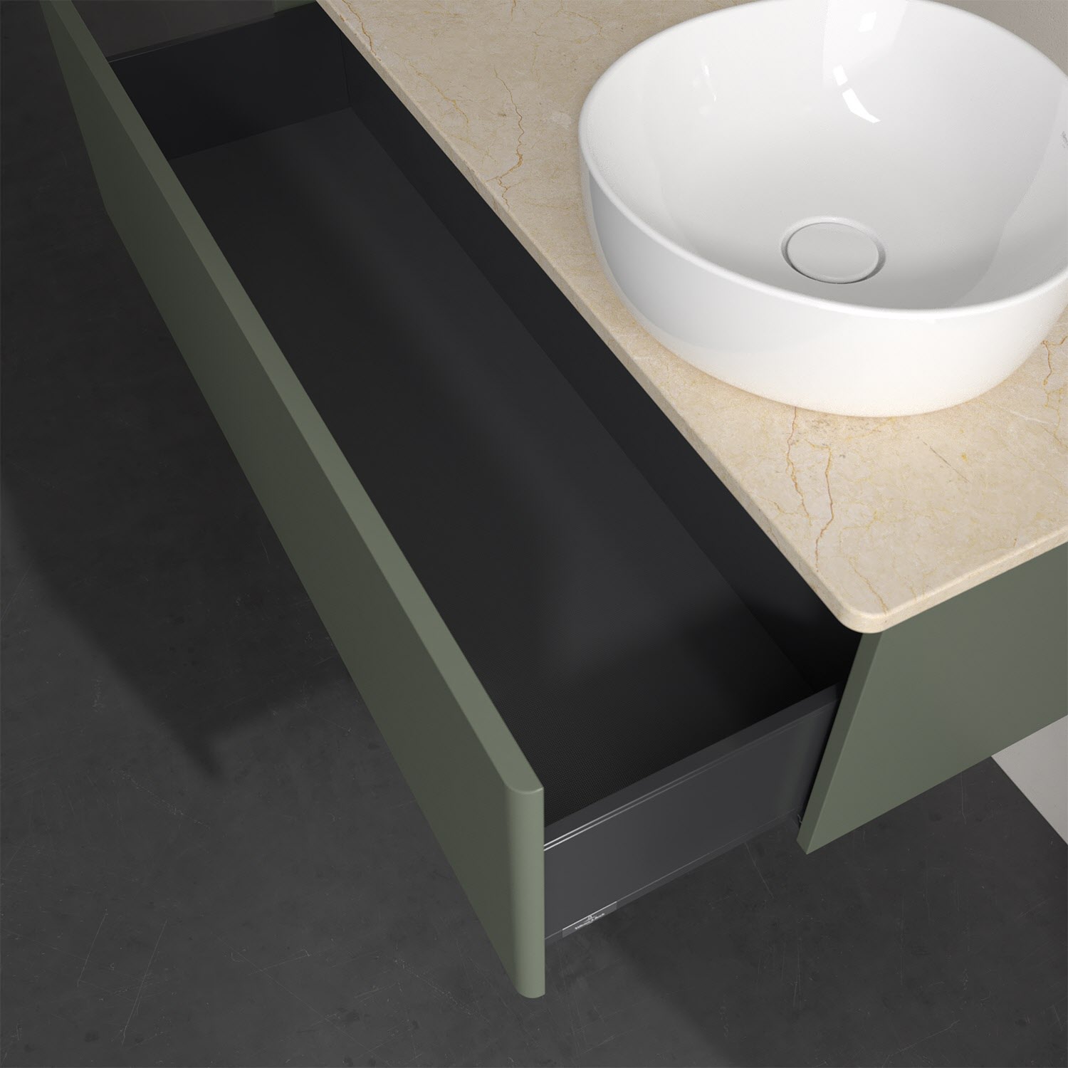 - kein Umfallen oder Verrutschen von Pflegeprodukten in den Schubladen dank rutschhemmendem Boden