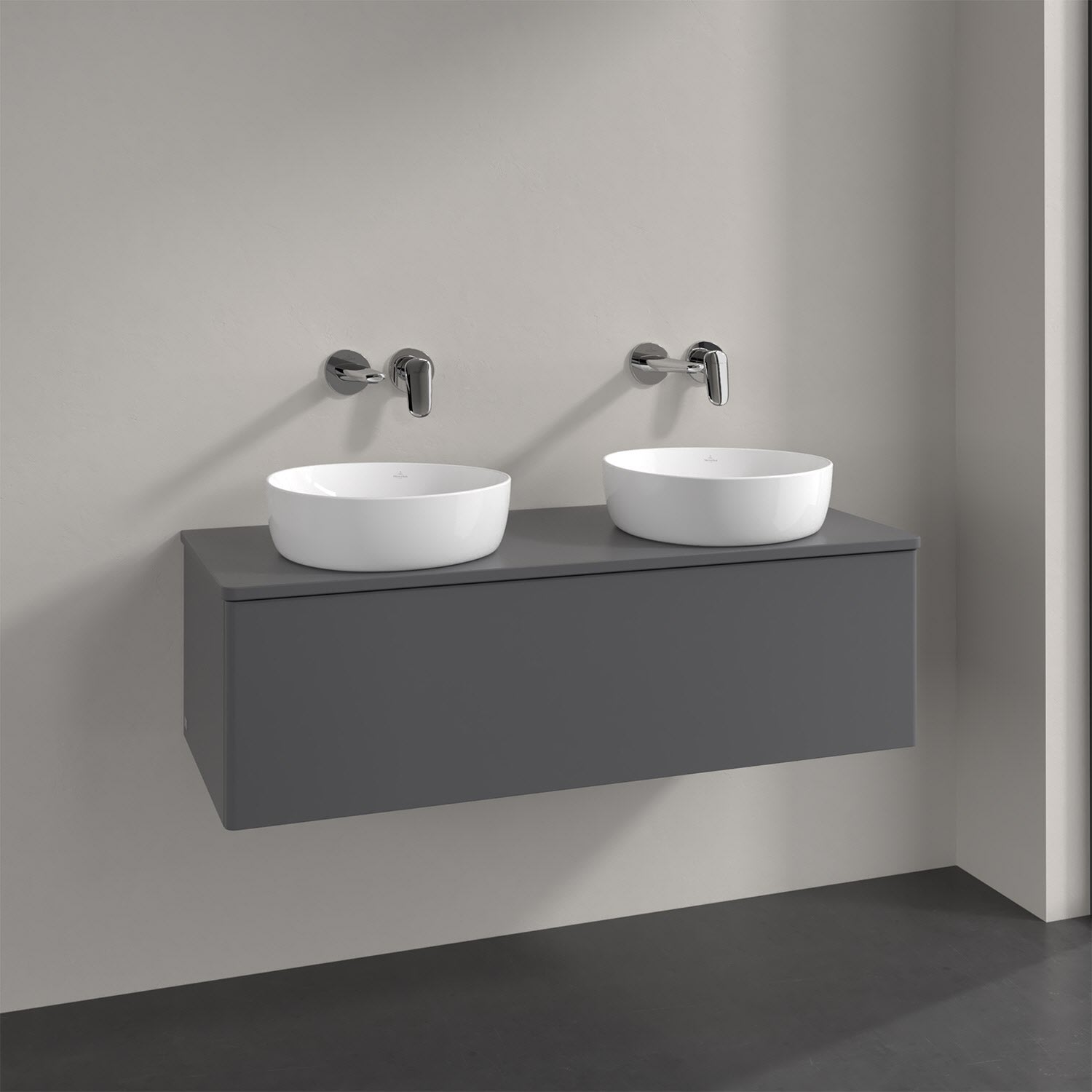 Villeroy & Boch Antao Waschbeckenunterschrank, 120 x 36 cm, 1 Auszug, Front ohne Struktur, ohne Hahnloch, für Waschtisch links und rechts