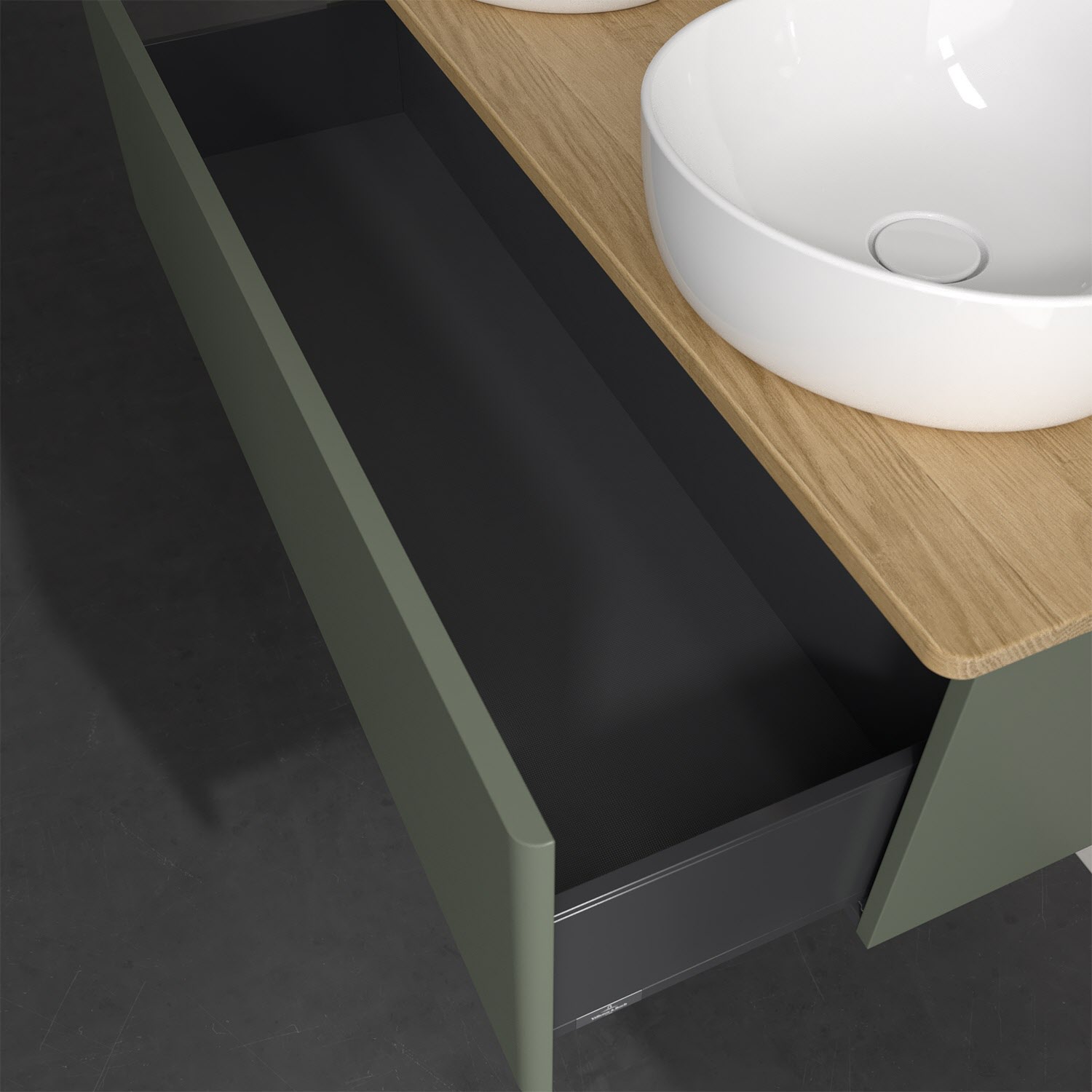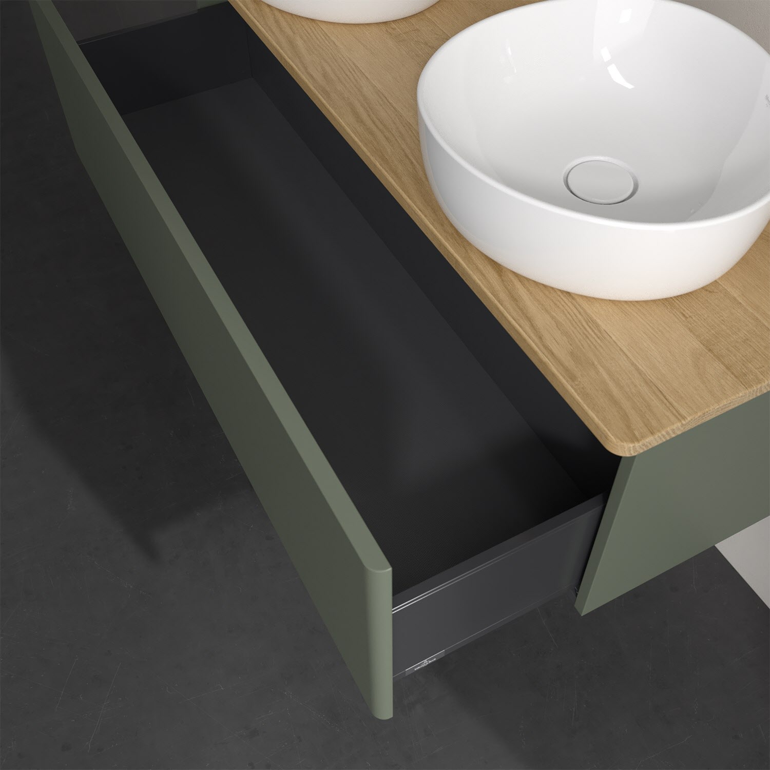 Der wandhängende Antao Waschtischunterschrank von Villeroy & Boch bietet nicht nur jede Menge Stauraum – er ist dank seines naturinspirierten Designs mit seinen abgerundeten Kanten auch noch besonders stilvoll und schafft eine gemütliche Atmosphäre im Badezimmer. Kombiniert mit zwei passenden Aufsatzwaschtischen also die ideale Wahl. Ein extra hoher Auszug bietet viel Platz, um alles Notwendige zu verstauen und Ordnung zu halten. Öffnen lässt er sich durch leichten Druck auf die grifflose Front. Dank Vollauszug hat man immer alles im Blick und der Antirutschboden verhindert ein Umfallen oder Verrutschen der Gegenstände. Einfach clever! Für eine besonders leichte Pflege sorgt die mehrschichtig deckend lackierte Oberfläche. Bei der Ausführung in Massivholz wird dank des verarbeiteten Massivholzes jedes Möbel zu einem Unikat, das sich durch das lebendige Naturmaterial durch seine einzigartige Struktur und Maserung auszeichnet.