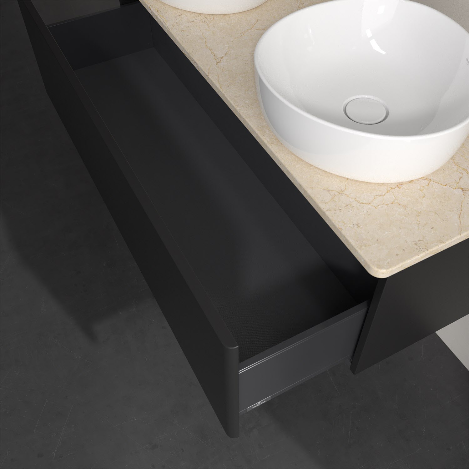 - kein Umfallen oder Verrutschen von Pflegeprodukten in den Schubladen dank rutschhemmendem Boden