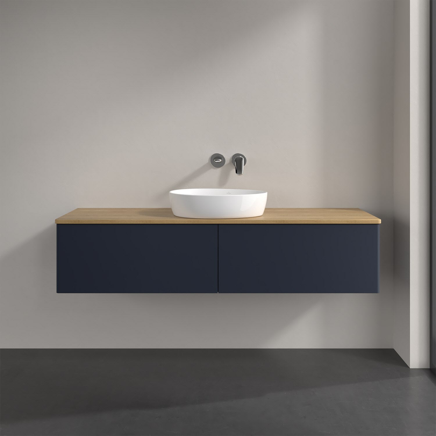 Villeroy & Boch Antao Waschbeckenunterschrank, 160 x 36 cm, 2 Auszüge, Front ohne Struktur, ohne Hahnloch, für Waschtisch mittig