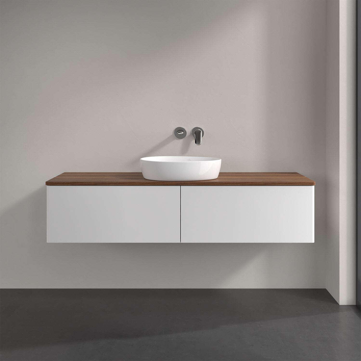 Villeroy & Boch Antao Waschbeckenunterschrank, 160 x 36 cm, 2 Auszüge, Front ohne Struktur, ohne Hahnloch, für Waschtisch mittig