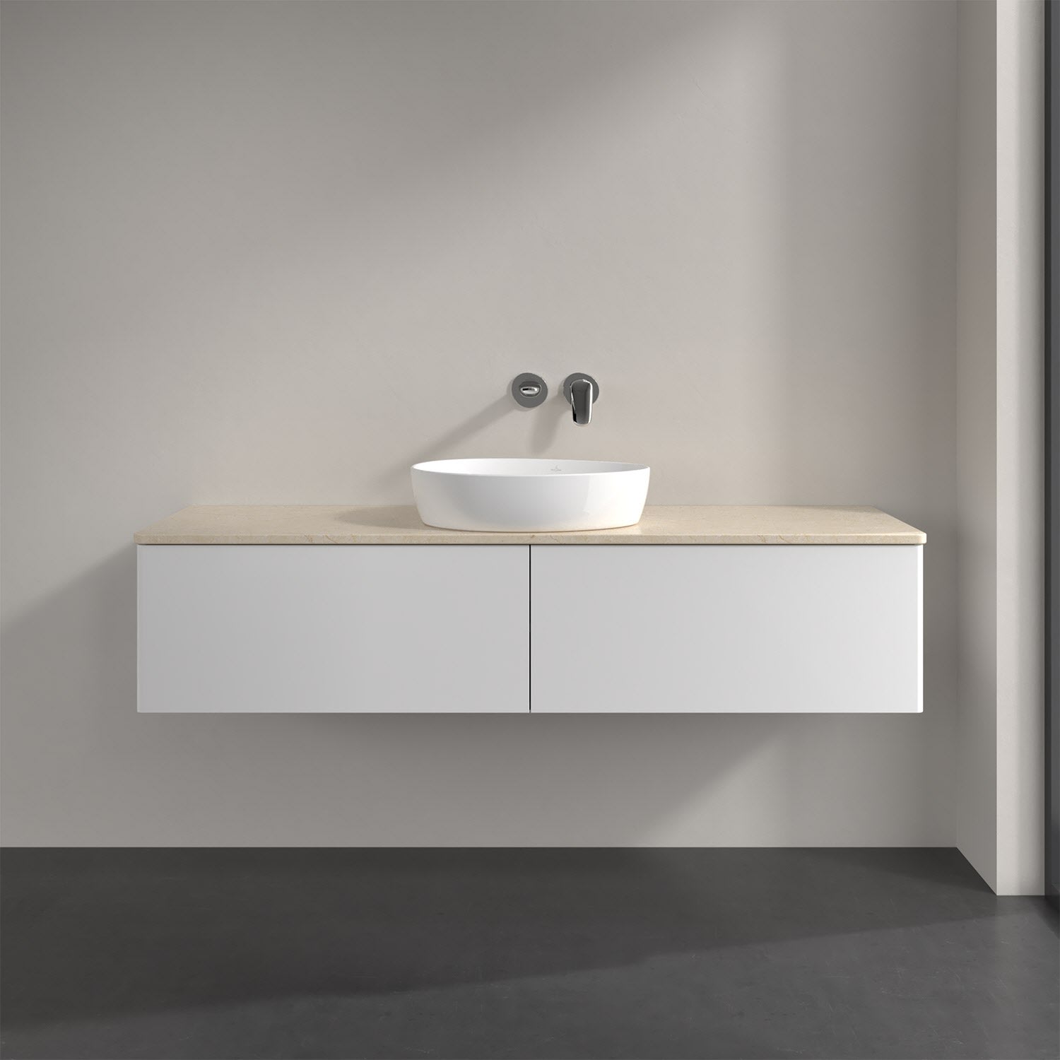 Villeroy & Boch Antao Waschbeckenunterschrank, 160 x 36 cm, 2 Auszüge, Front ohne Struktur, ohne Hahnloch, für Waschtisch mittig