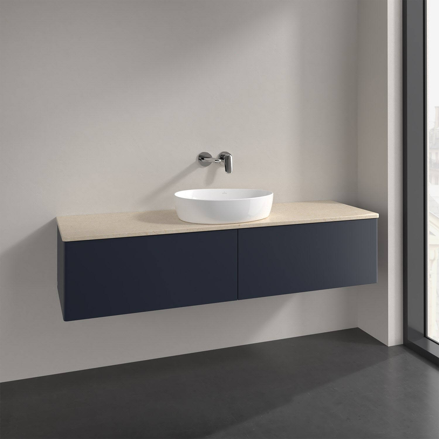 Villeroy & Boch Antao Waschbeckenunterschrank, 160 x 36 cm, 2 Auszüge, Front ohne Struktur, ohne Hahnloch, für Waschtisch mittig