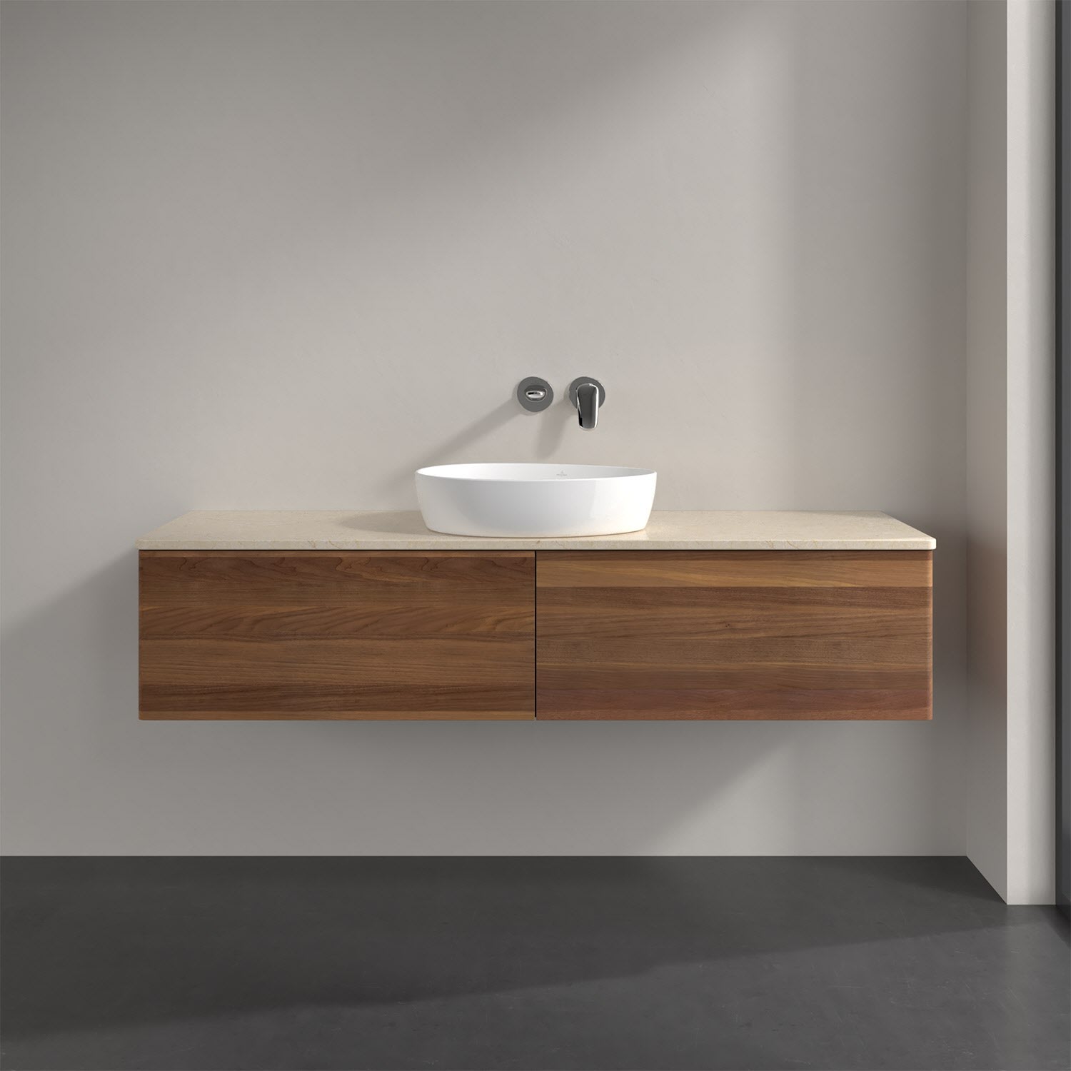 Villeroy & Boch Antao Waschbeckenunterschrank, 160 x 36 cm, 2 Auszüge, Front ohne Struktur, ohne Hahnloch, für Waschtisch mittig