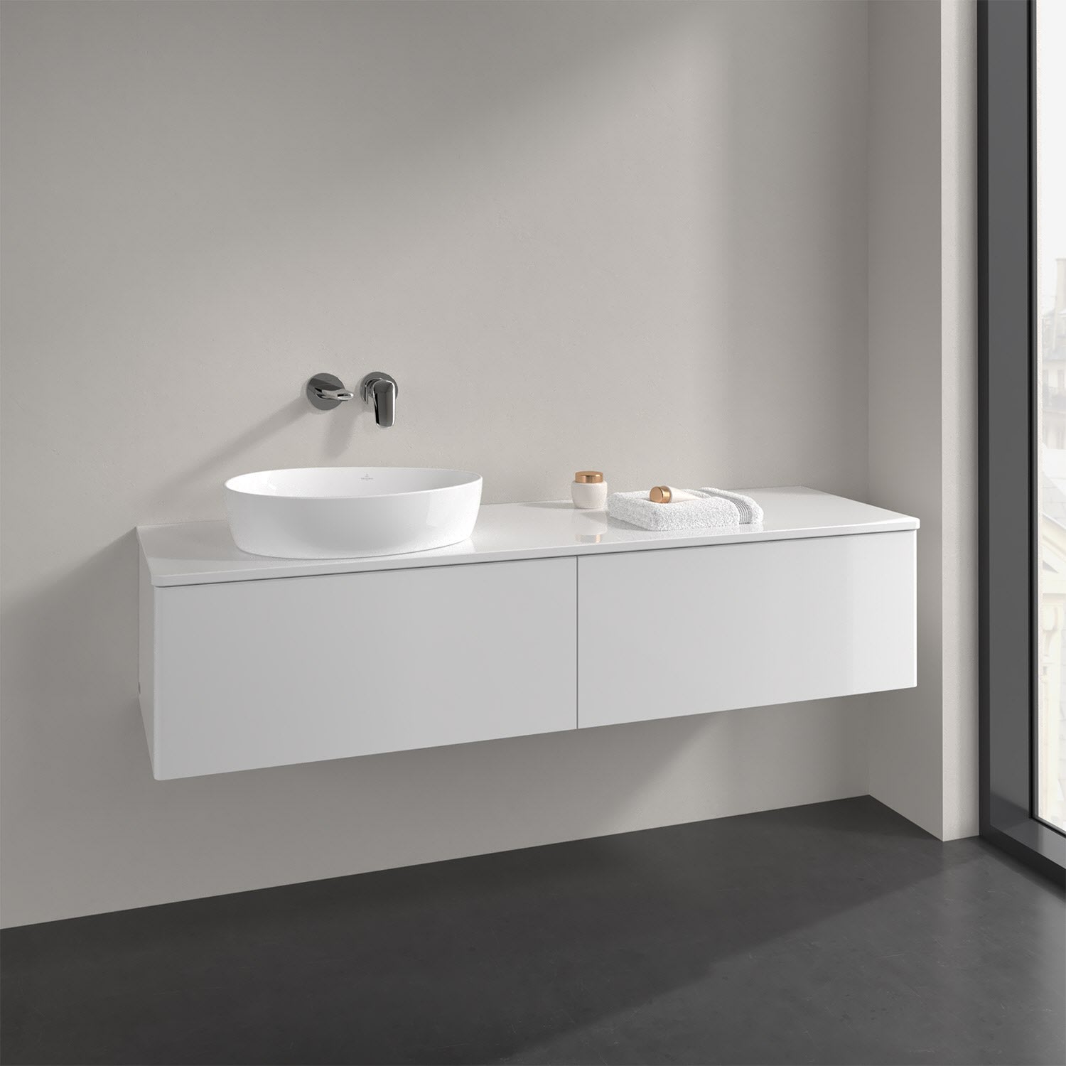 Villeroy & Boch Antao Waschbeckenunterschrank, 160 x 36 cm, 2 Auszüge, Front ohne Struktur, ohne Hahnloch, für Waschtisch links