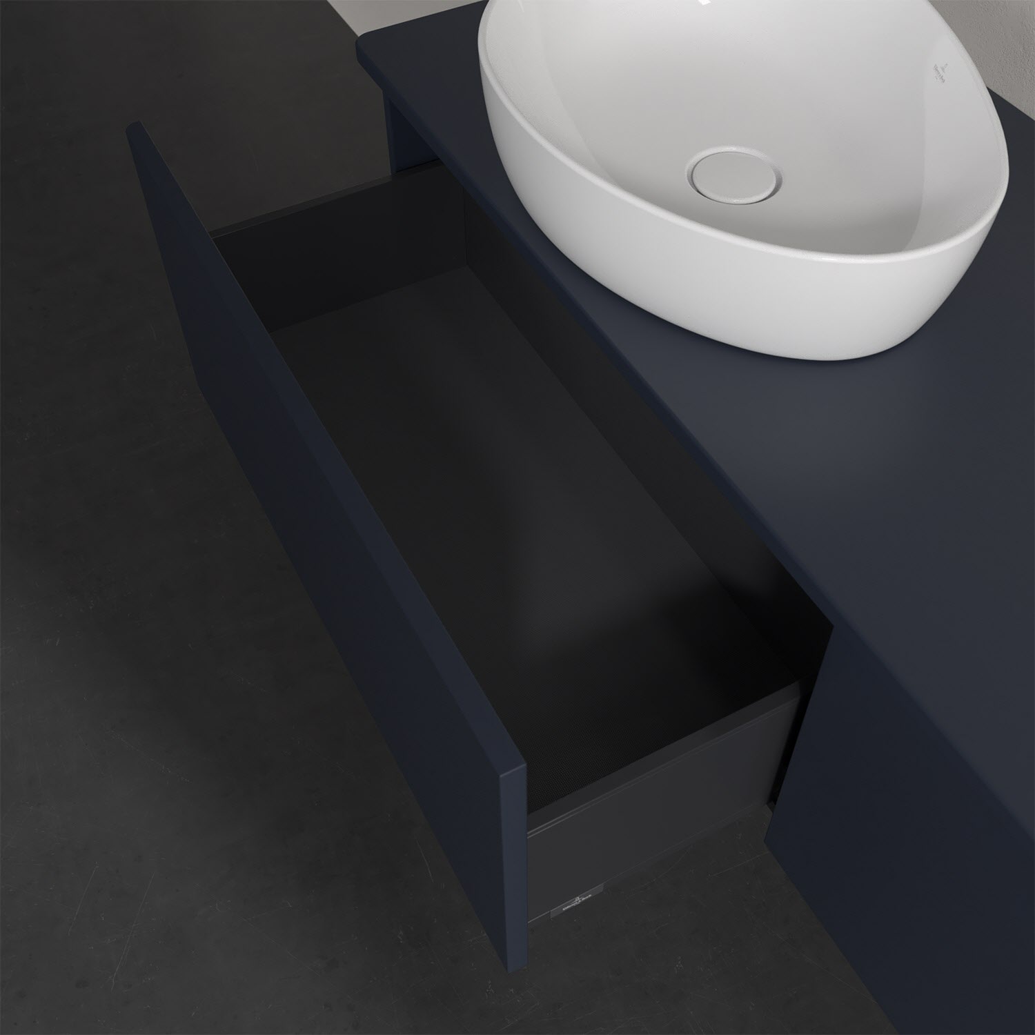 Villeroy & Boch Antao Waschbeckenunterschrank, 160 x 36 cm, 2 Auszüge, Front ohne Struktur, ohne Hahnloch, für Waschtisch links