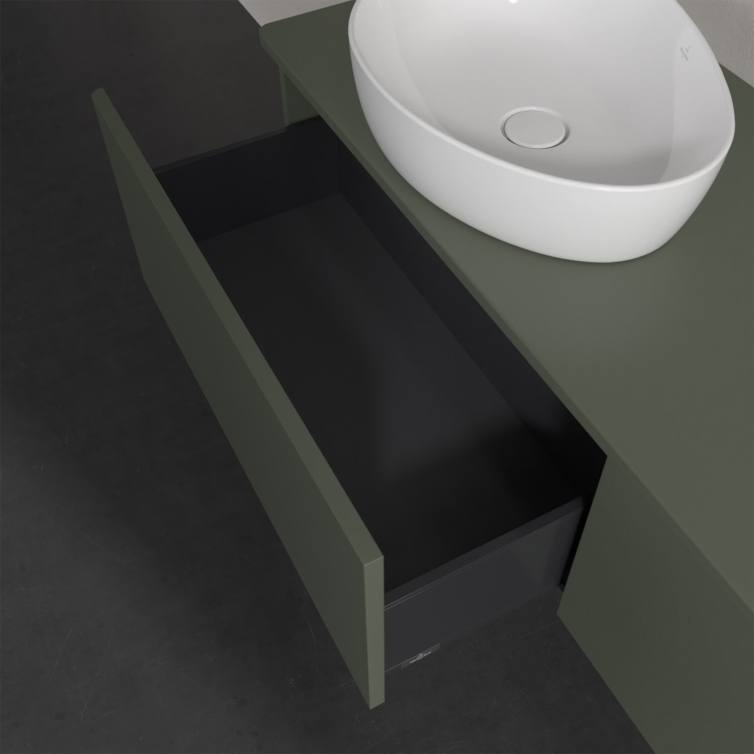 Villeroy & Boch Antao Waschbeckenunterschrank, 160 x 36 cm, 2 Auszüge, Front ohne Struktur, ohne Hahnloch, für Waschtisch links