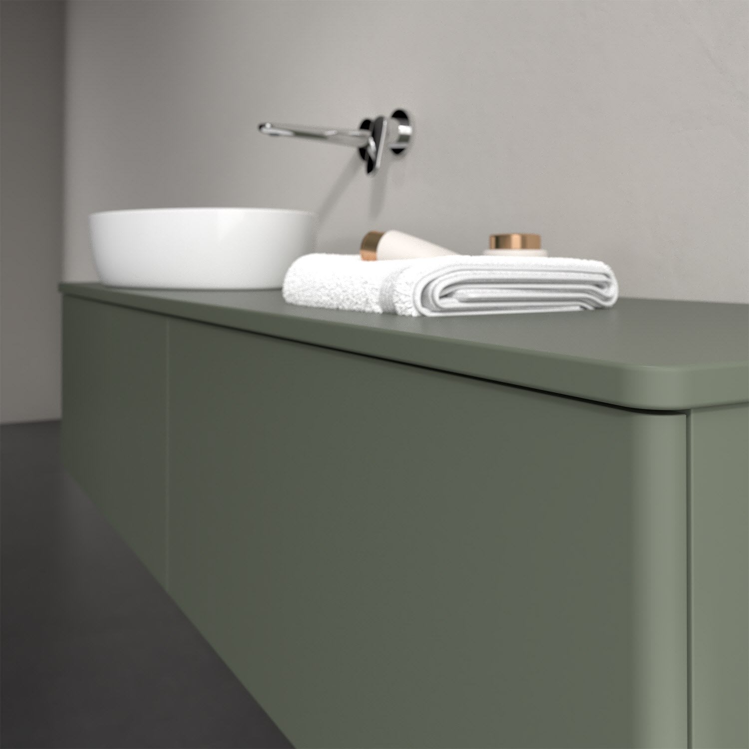 Für diesen Waschbeckenunterschrank stehen Ihnen Aufsatzwaschtische aus verschiedenen Serien zur Verfügung (siehe "Passliste" unter Downloads). Ein ausgewähltes Beispiel finden Sie im Zubehör. Den Waschtisch bitte separat mitbestellen.