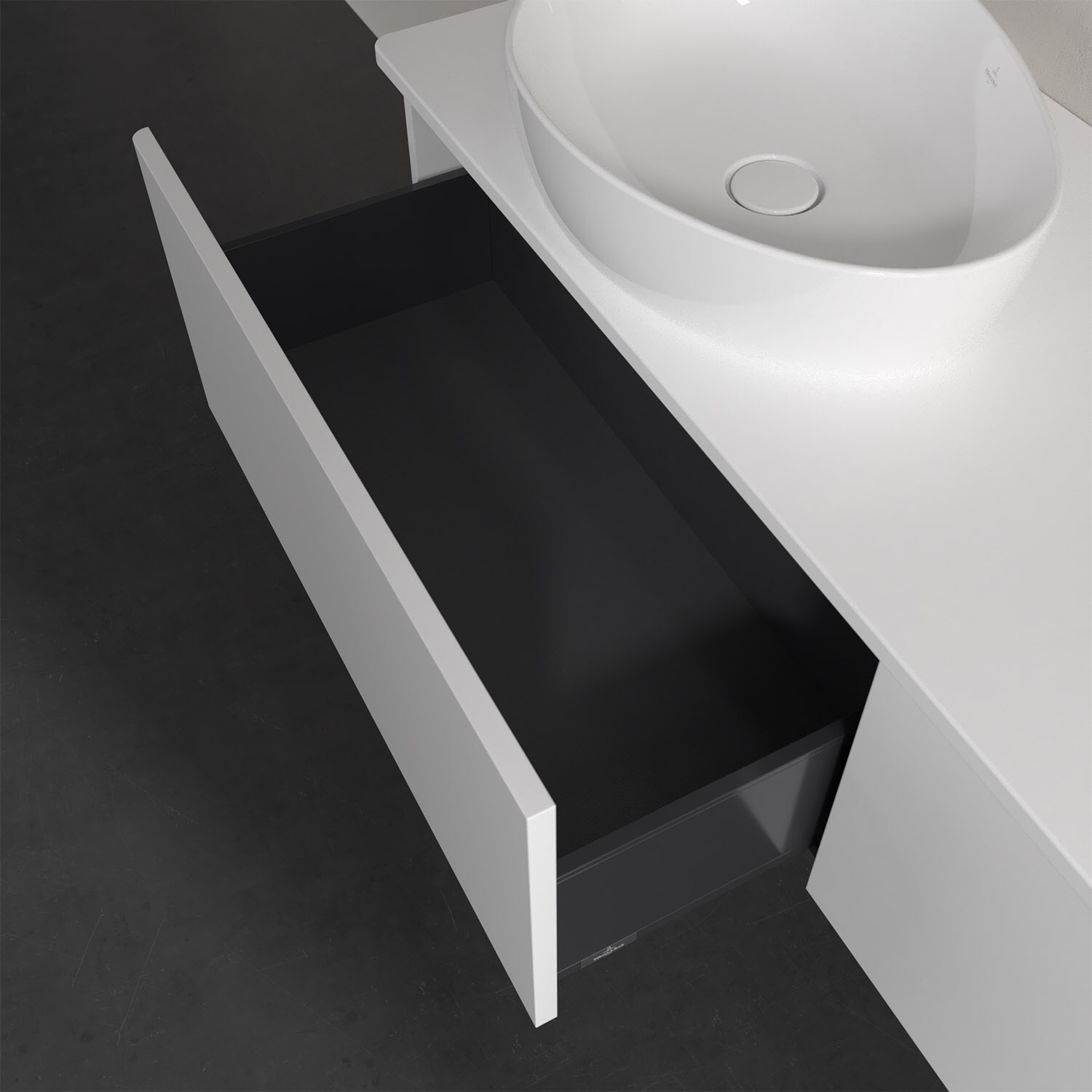 Villeroy & Boch Antao Waschbeckenunterschrank, 160 x 36 cm, 2 Auszüge, Front ohne Struktur, ohne Hahnloch, für Waschtisch links