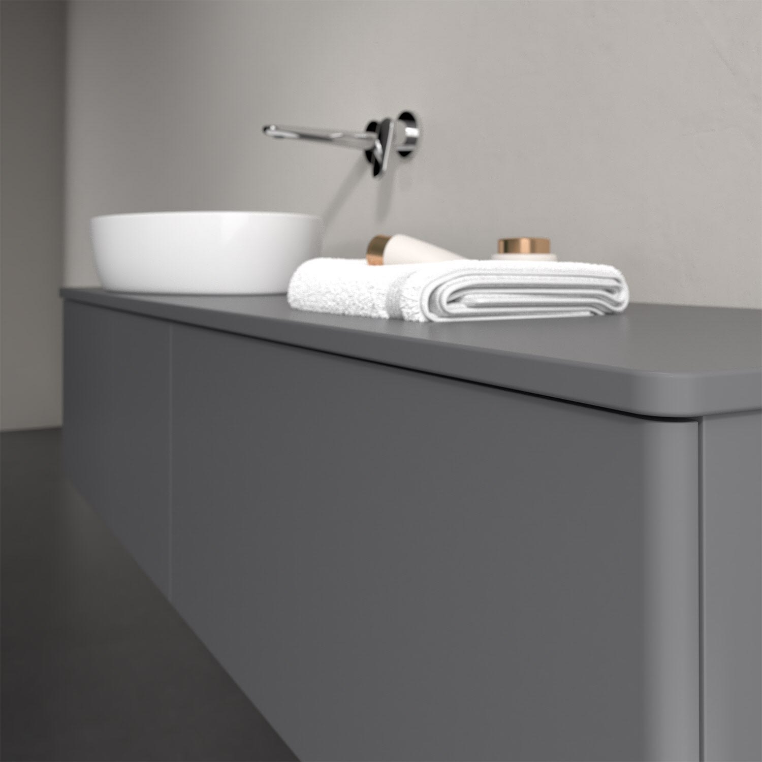 Für diesen Waschbeckenunterschrank stehen Ihnen Aufsatzwaschtische aus verschiedenen Serien zur Verfügung (siehe "Passliste" unter Downloads). Ein ausgewähltes Beispiel finden Sie im Zubehör. Den Waschtisch bitte separat mitbestellen.