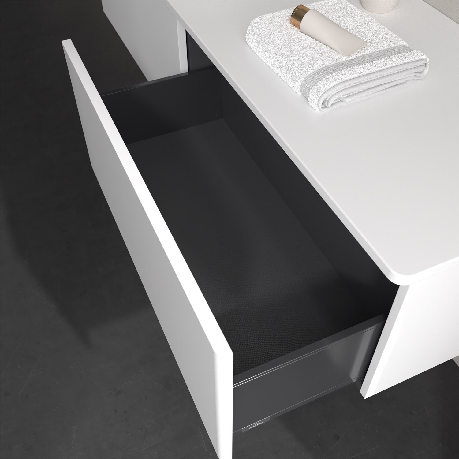 - kein Umfallen oder Verrutschen von Pflegeprodukten in den Schubladen dank rutschhemmendem Boden