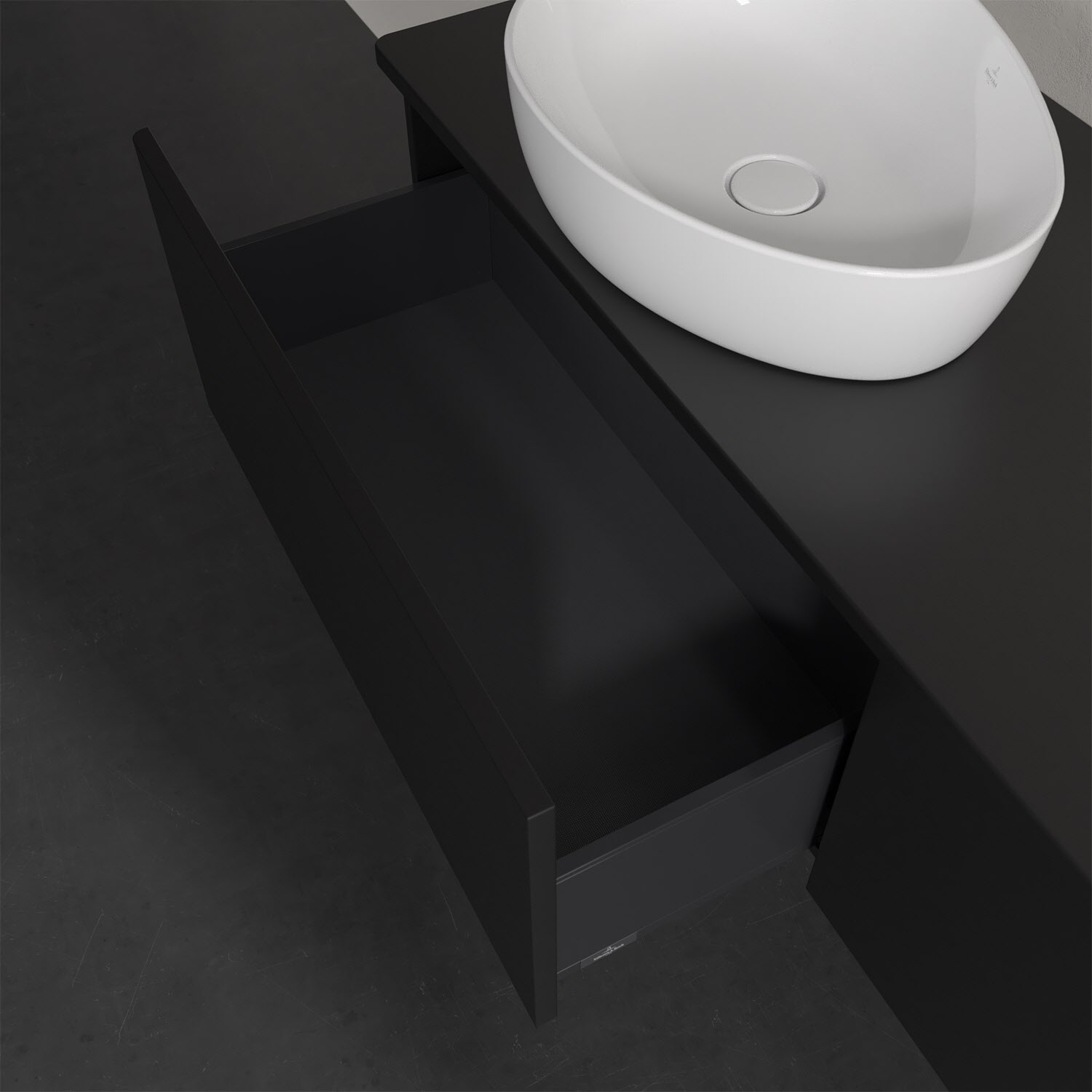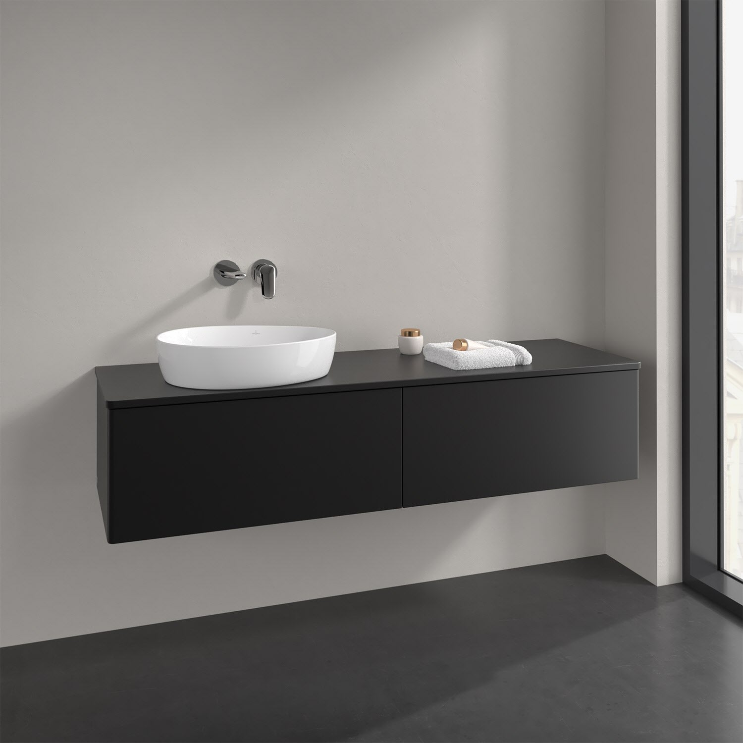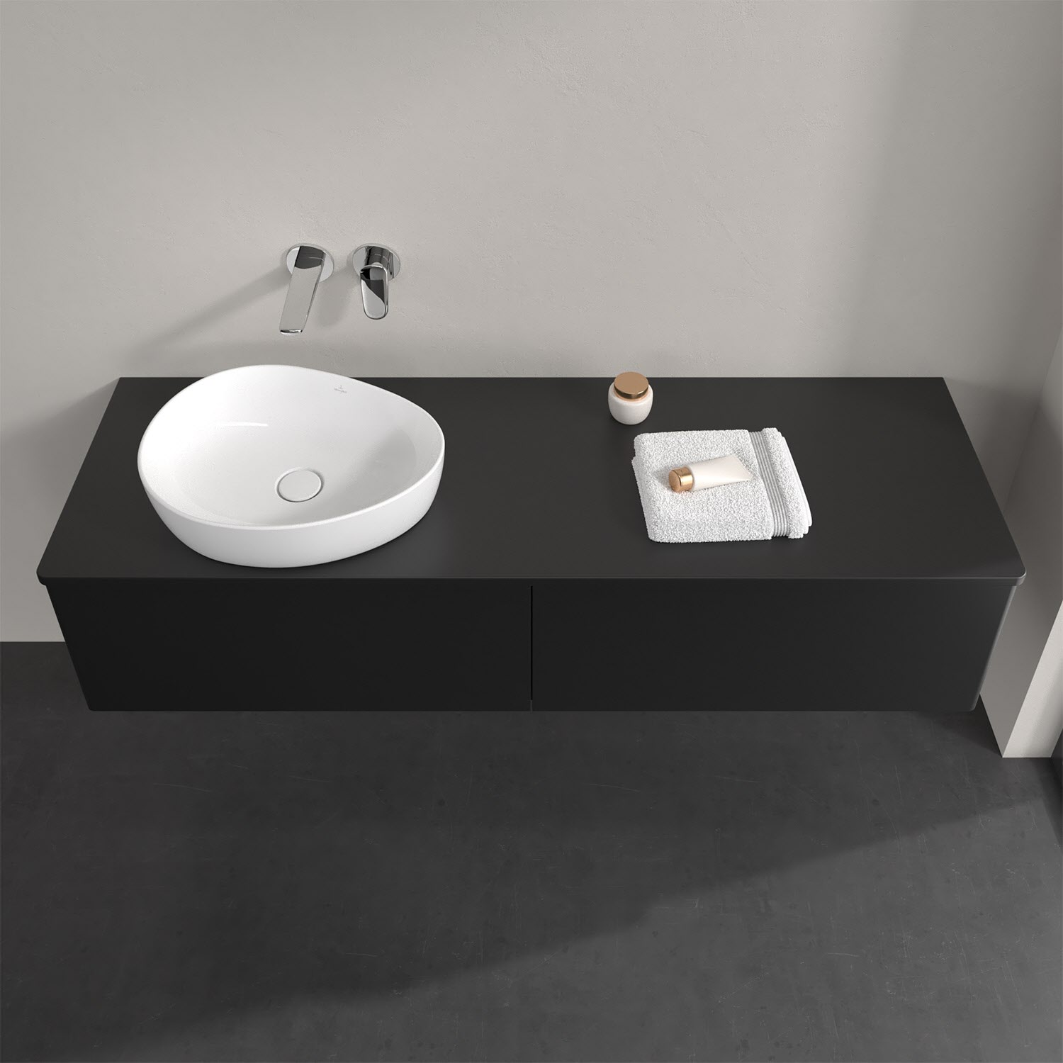 Villeroy & Boch Antao Waschbeckenunterschrank, 160 x 36 cm, 2 Auszüge, Front ohne Struktur, ohne Hahnloch, für Waschtisch links
