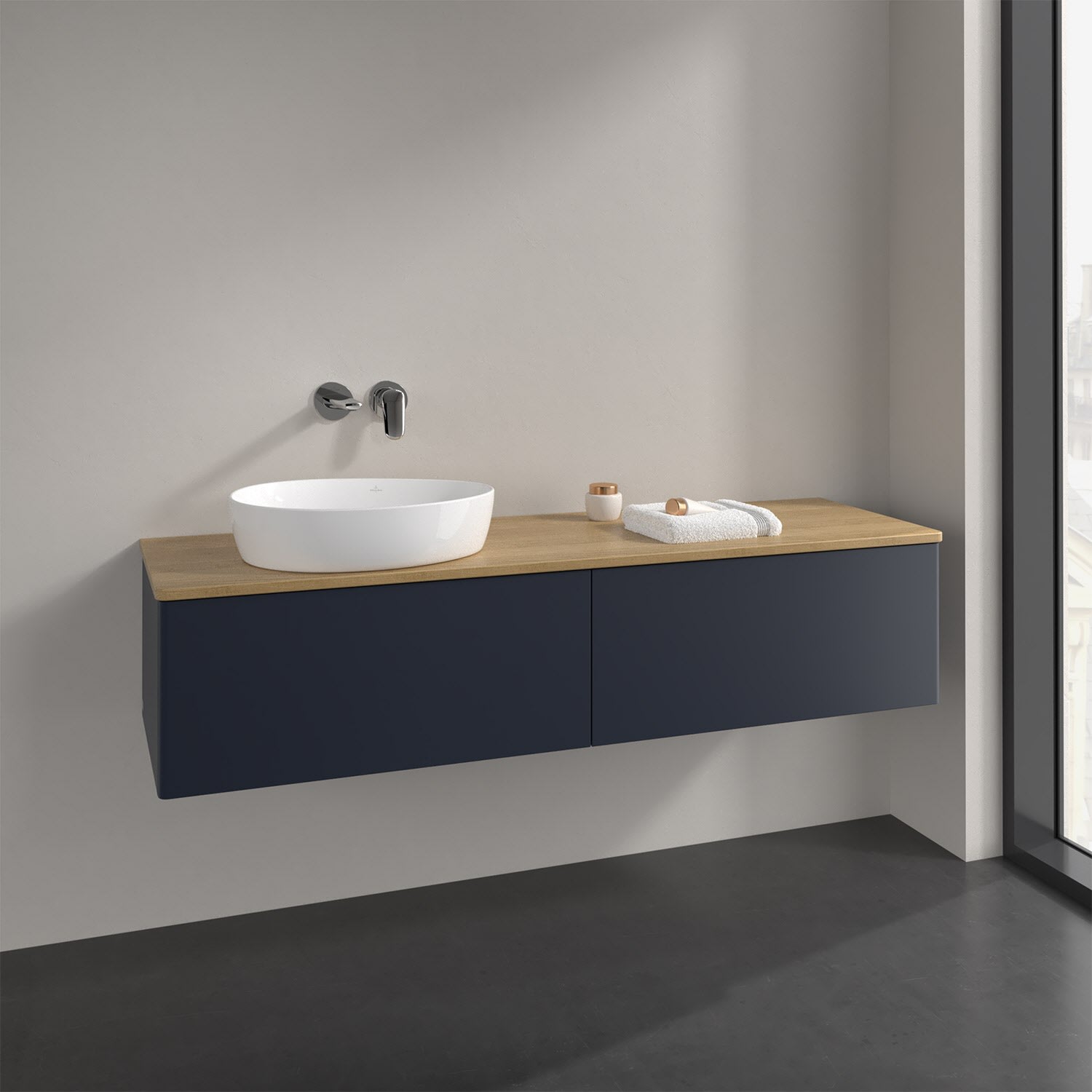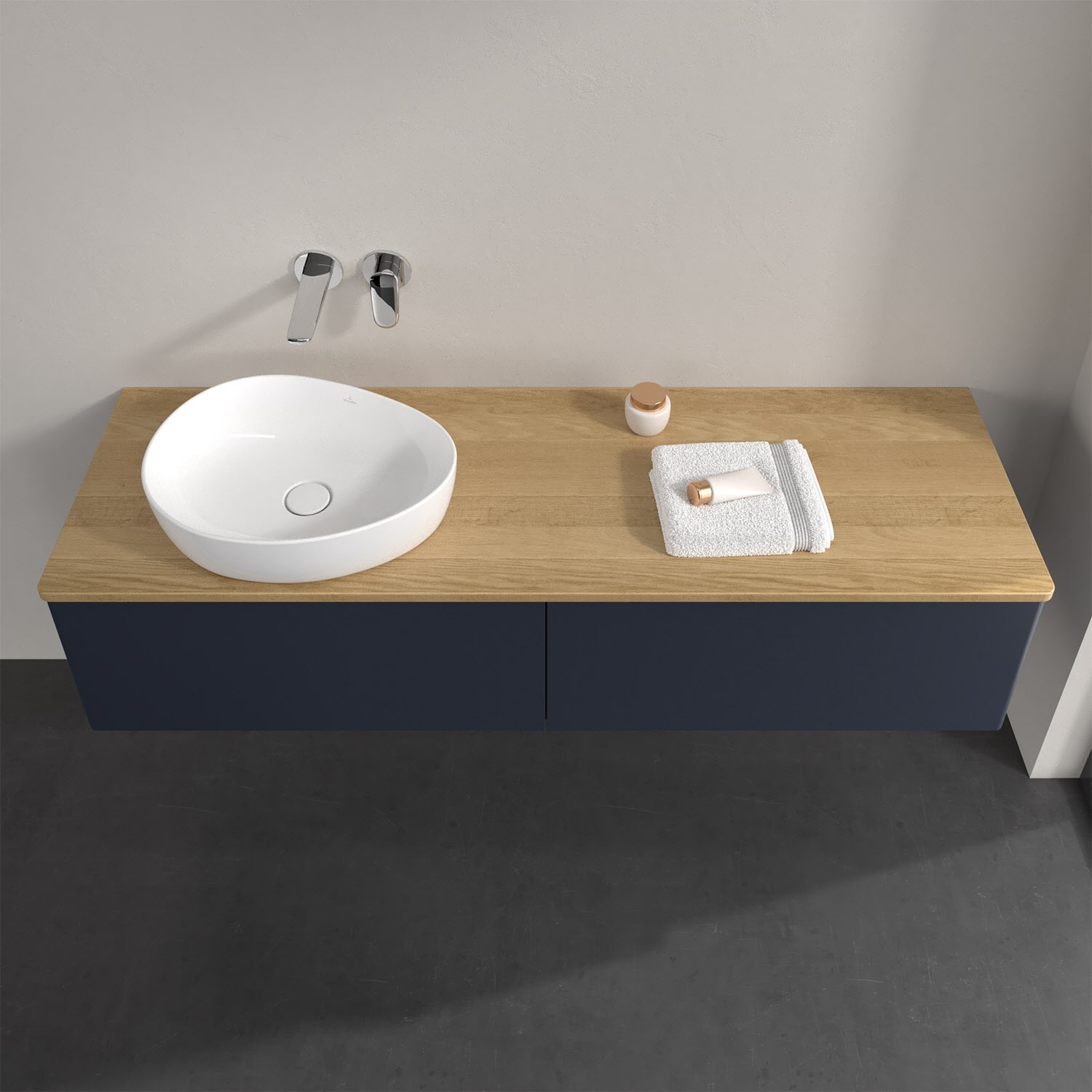 Der wandhängende Antao Waschtischunterschrank bietet mit seinen beiden extra hohen Auszügen und seiner erstaunlichen Größe viel Platz zum Verstauen von Utensilien im Badezimmer. Dank des seitlich platzierten Aufsatzwaschtischs gibt es daneben weiteren Platz für Handtücher, Seifenspender & Co. auf der Waschtischplatte. Inspiriert von der Natur überzeugt der Unterschrank auch optisch mit sanfter Formsprache und abgerundete Kanten. Die grifflosen Auszüge sind mit der Push-to-Open Funktion ausgestattet und verfügen über einen Antirutschboden, damit Utensilien sicher verstaut werden können. Mit seiner Vollauszug- und Selbsteinzug-Funktion ist der Schrank praktisch und leicht zu bedienen. Qualität von Villeroy & Boch! Für eine besonders leichte Pflege sorgt die mehrschichtig deckend lackierte Oberfläche. Bei der Ausführung in Massivholz wird dank des verarbeiteten Massivholzes jedes Möbel zu einem Unikat, das sich durch das lebendige Naturmaterial durch seine einzigartige Struktur und Maserung auszeichnet.