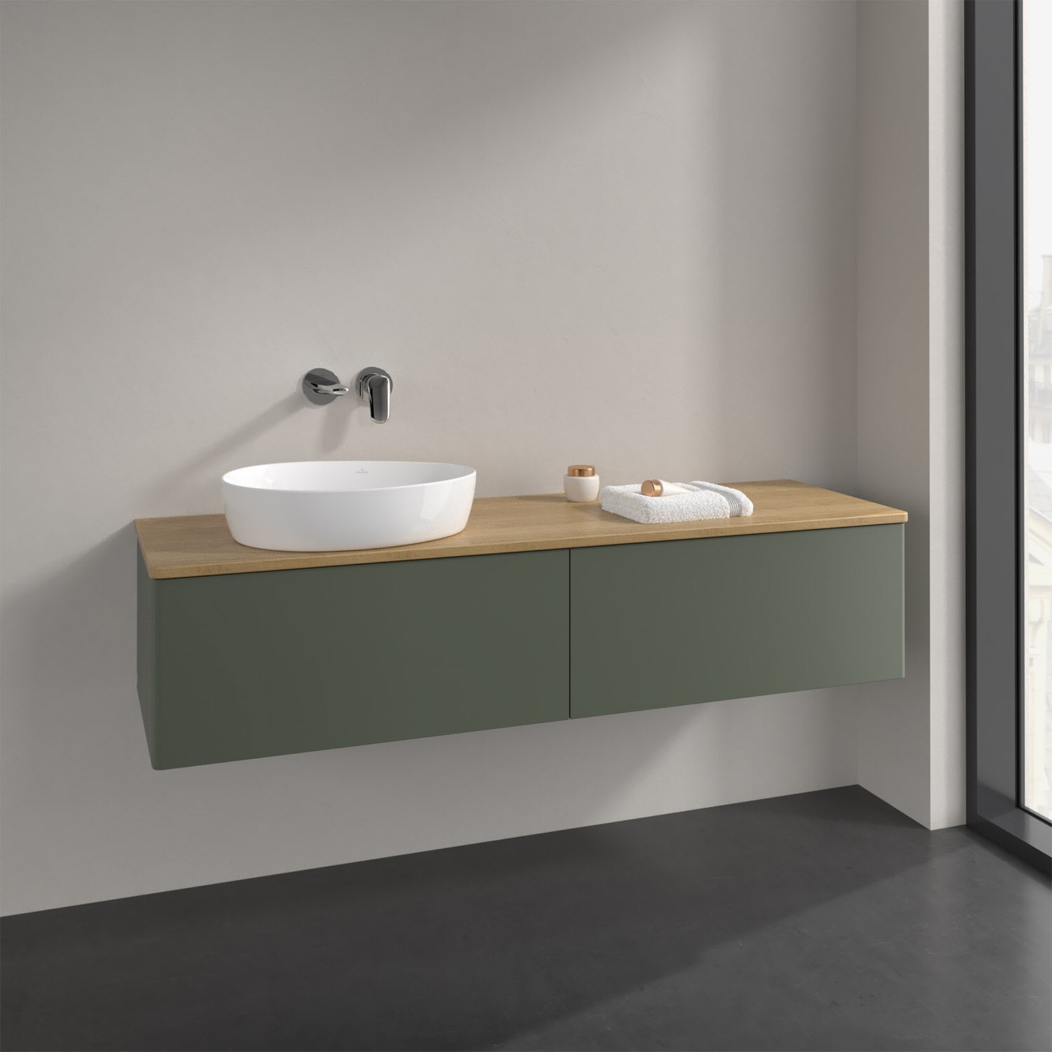Villeroy & Boch Antao Waschbeckenunterschrank, 160 x 36 cm, 2 Auszüge, Front ohne Struktur, ohne Hahnloch, für Waschtisch links