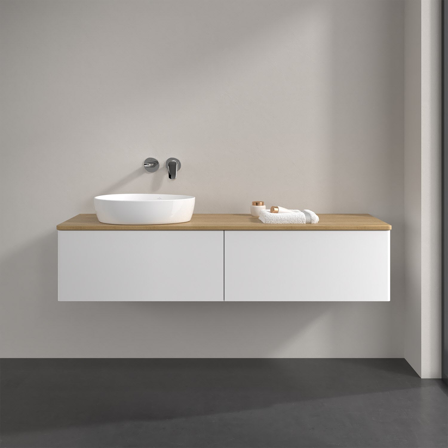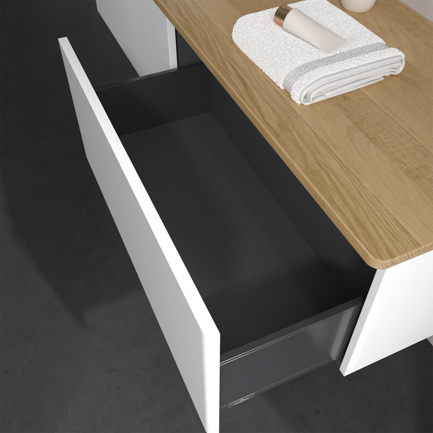 Villeroy & Boch Antao Waschbeckenunterschrank, 160 x 36 cm, 2 Auszüge, Front ohne Struktur, ohne Hahnloch, für Waschtisch links