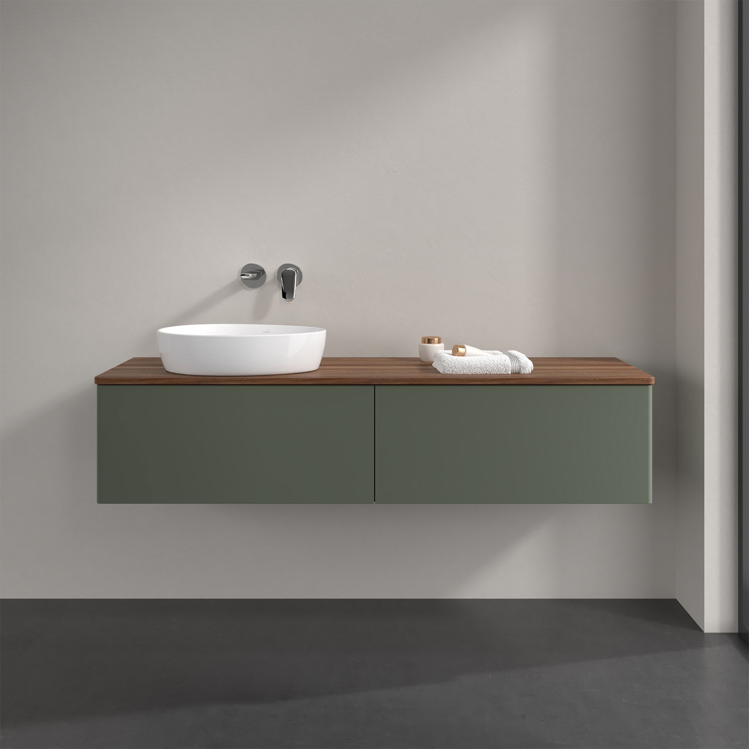 Villeroy & Boch Antao Waschbeckenunterschrank, 160 x 36 cm, 2 Auszüge, Front ohne Struktur, ohne Hahnloch, für Waschtisch links
