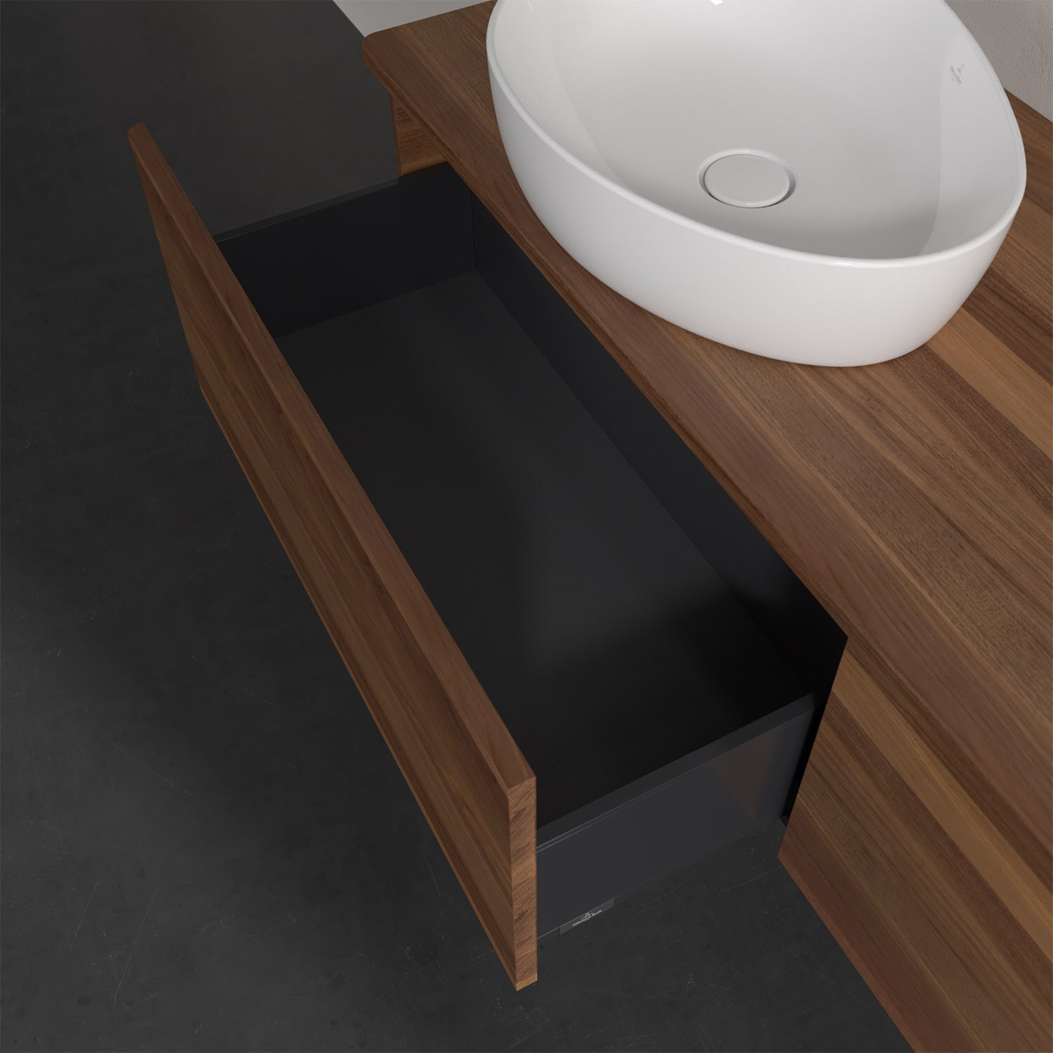 Villeroy & Boch Antao Waschbeckenunterschrank, 160 x 36 cm, 2 Auszüge, Front ohne Struktur, ohne Hahnloch, für Waschtisch links
