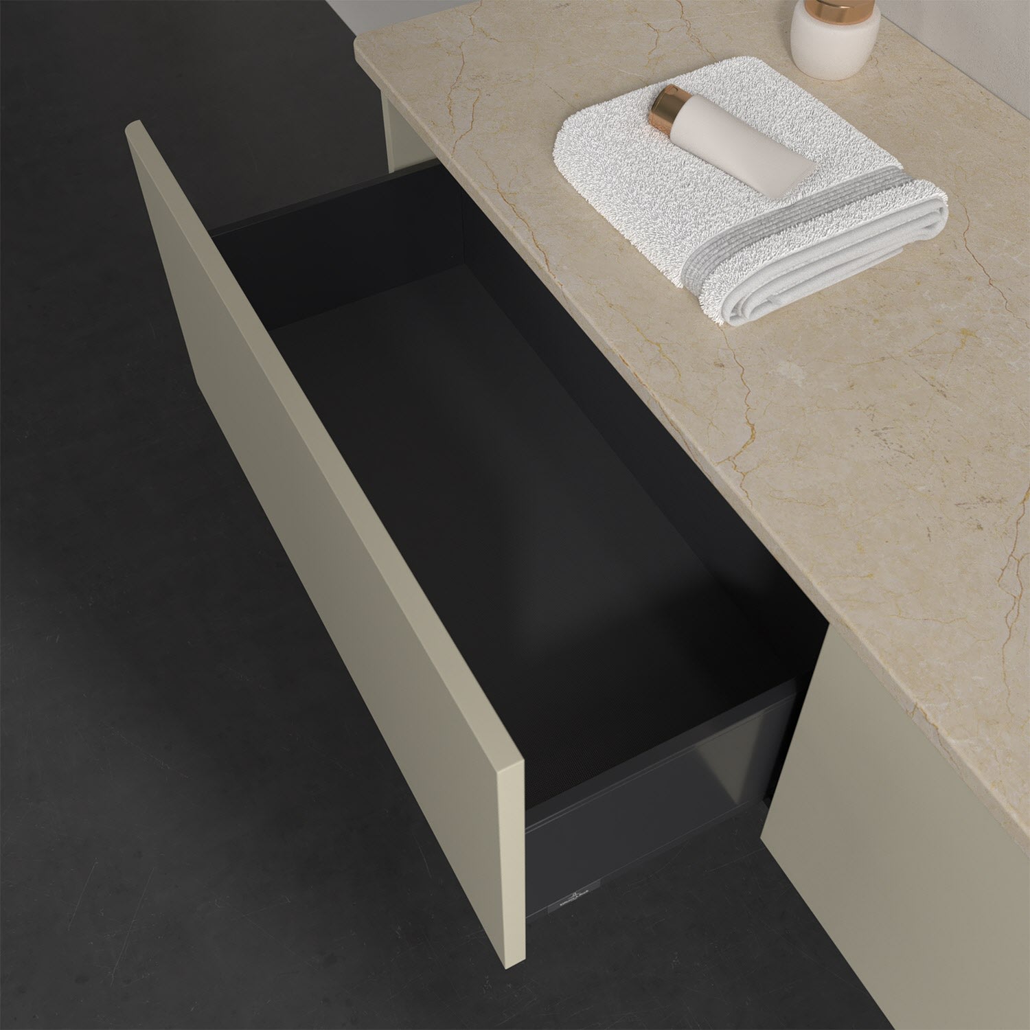 Villeroy & Boch Antao Waschbeckenunterschrank, 160 x 36 cm, 2 Auszüge, Front ohne Struktur, ohne Hahnloch, für Waschtisch rechts