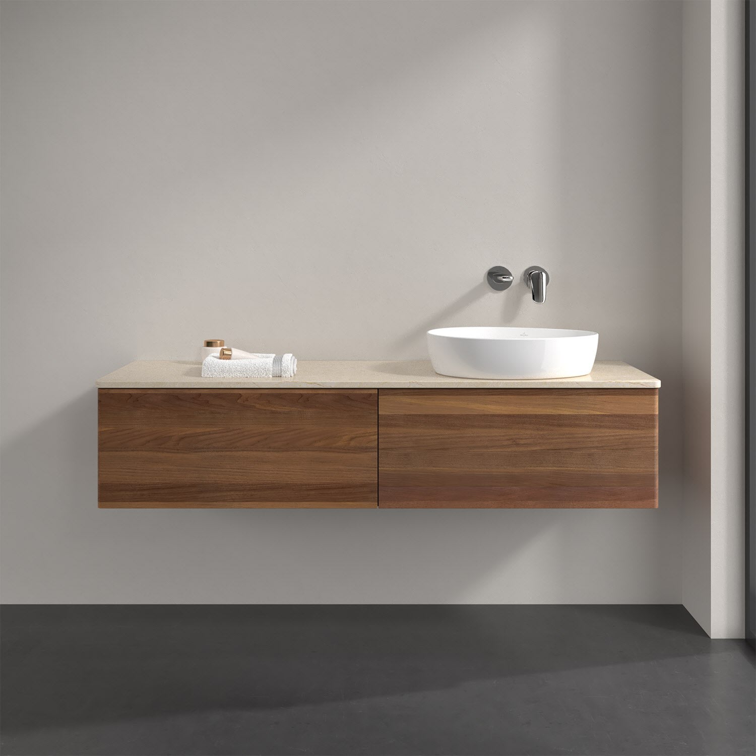 Villeroy & Boch Antao Waschbeckenunterschrank, 160 x 36 cm, 2 Auszüge, Front ohne Struktur, ohne Hahnloch, für Waschtisch rechts