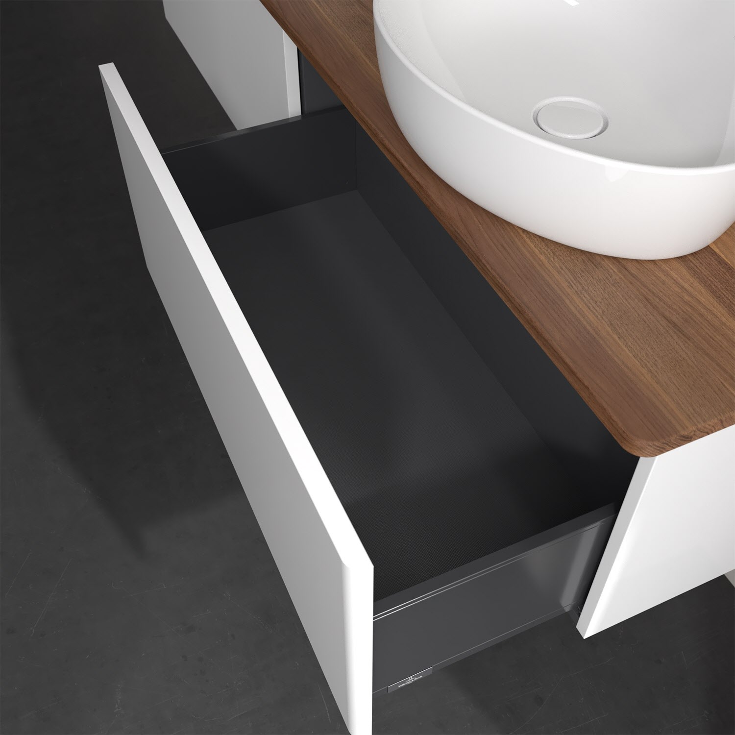 Villeroy & Boch Antao Waschbeckenunterschrank, 160 x 36 cm, 2 Auszüge, Front ohne Struktur, ohne Hahnloch, für Waschtisch links und rechts