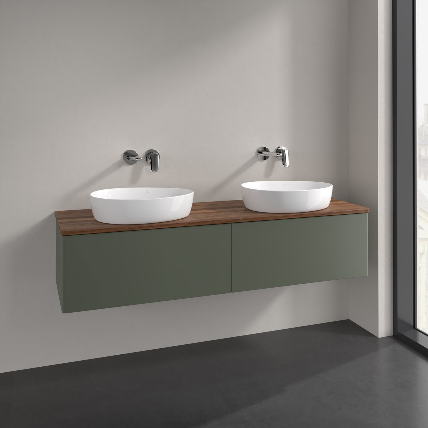 Villeroy & Boch Antao Waschbeckenunterschrank, 160 x 36 cm, 2 Auszüge, Front ohne Struktur, ohne Hahnloch, für Waschtisch links und rechts