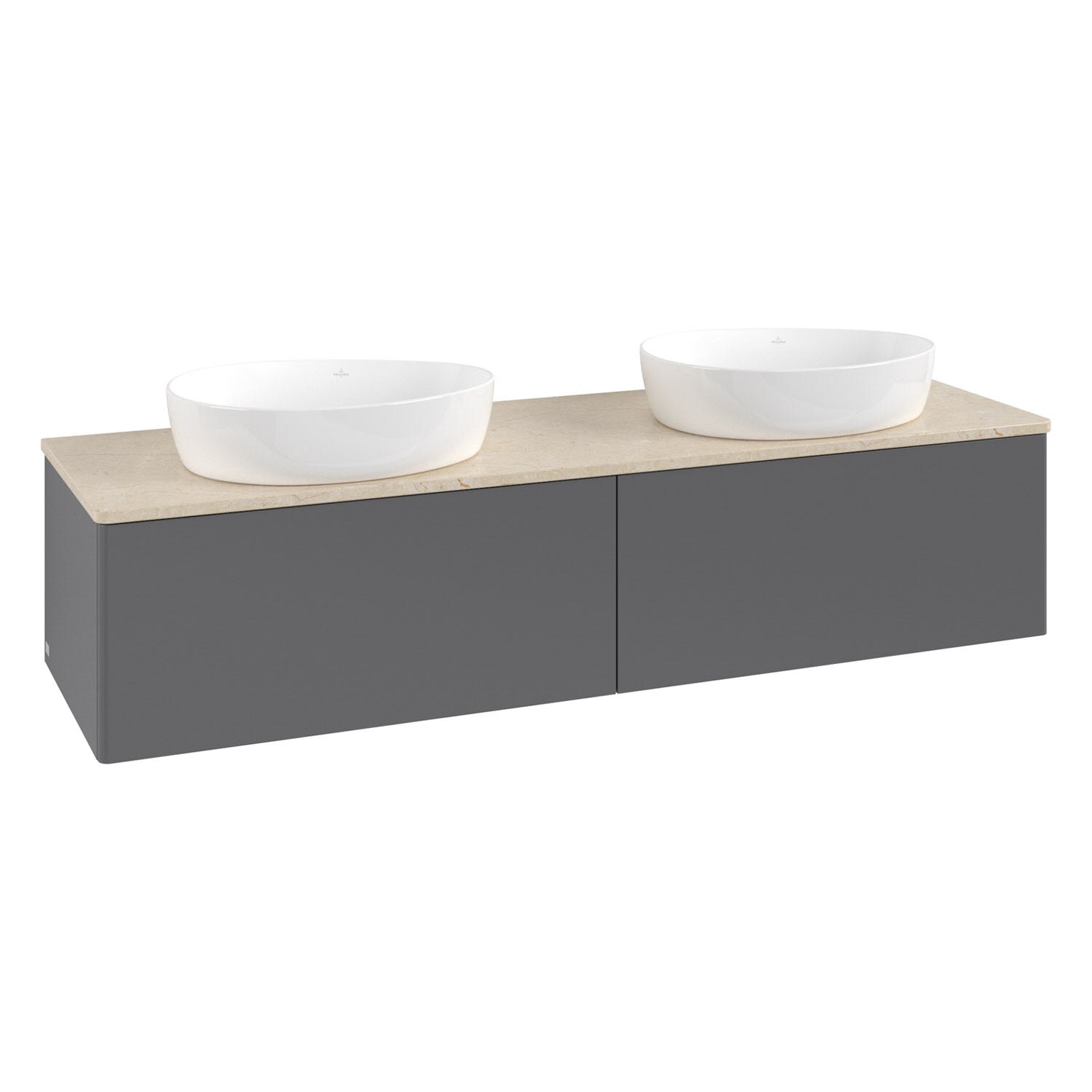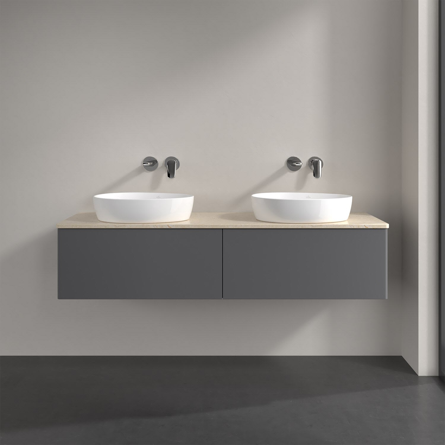 Villeroy & Boch Antao Waschbeckenunterschrank, 160 x 36 cm, 2 Auszüge, Front ohne Struktur, ohne Hahnloch, für Waschtisch links und rechts
