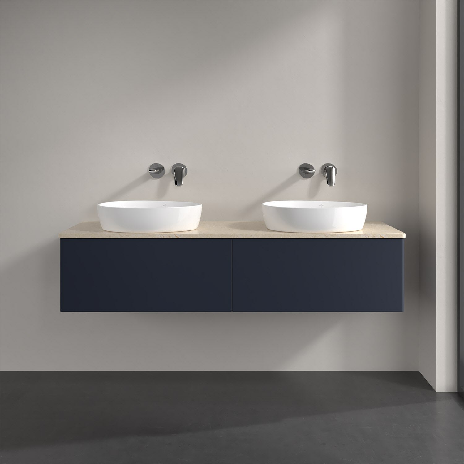 Villeroy & Boch Antao Waschbeckenunterschrank, 160 x 36 cm, 2 Auszüge, Front ohne Struktur, ohne Hahnloch, für Waschtisch links und rechts