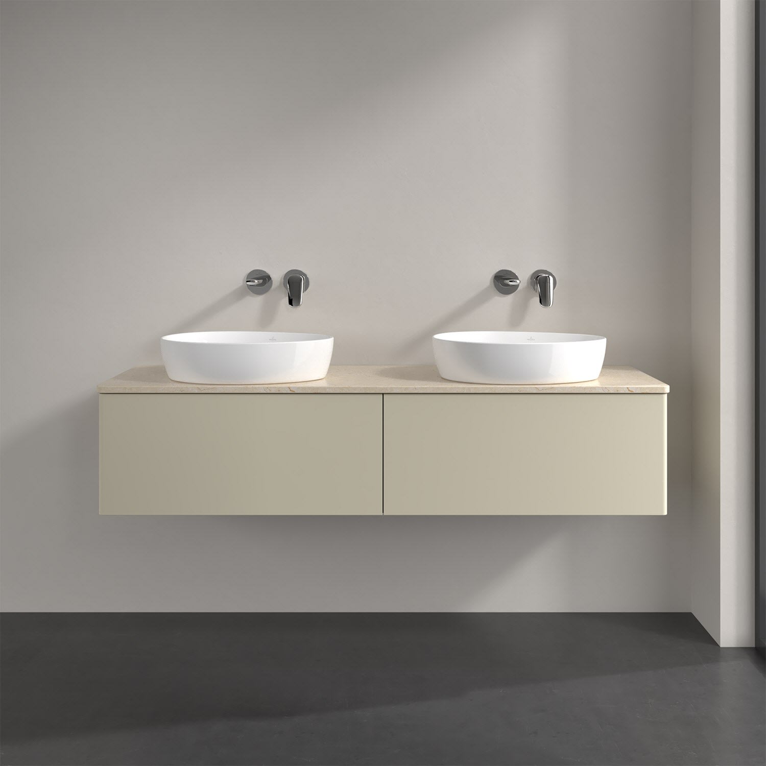 Villeroy & Boch Antao Waschbeckenunterschrank, 160 x 36 cm, 2 Auszüge, Front ohne Struktur, ohne Hahnloch, für Waschtisch links und rechts
