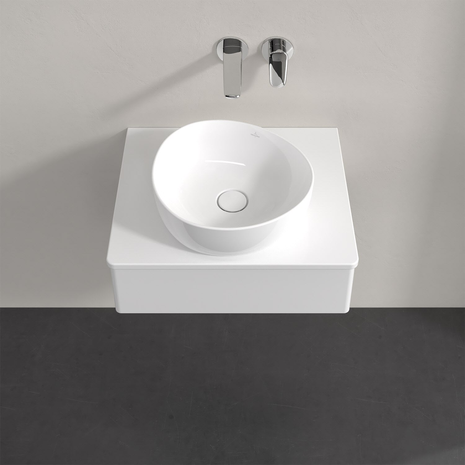 Für diesen Waschbeckenunterschrank stehen Ihnen Aufsatzwaschtische aus verschiedenen Serien zur Verfügung (siehe "Passliste" unter Downloads). Ein ausgewähltes Beispiel finden Sie im Zubehör. Den Waschtisch bitte separat mitbestellen.