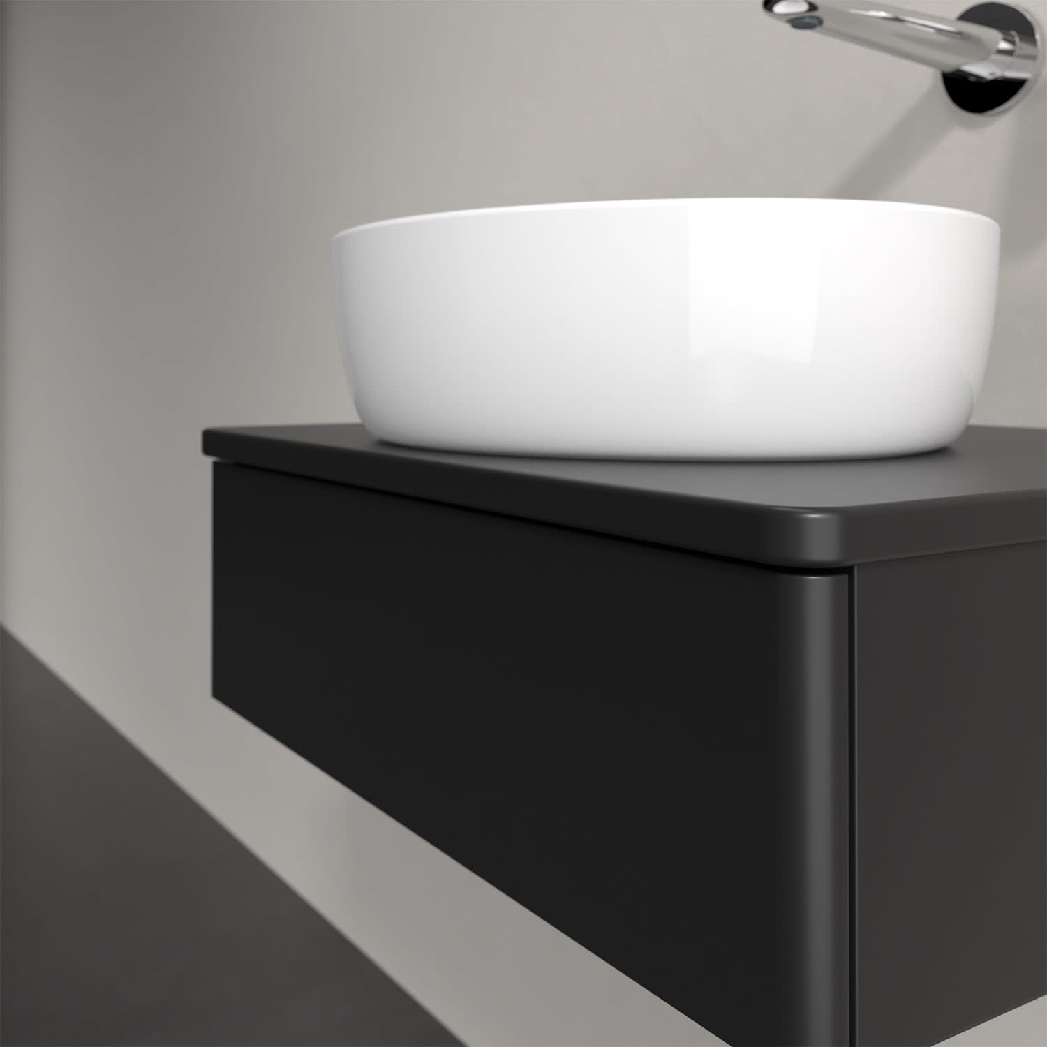 Für diesen Waschbeckenunterschrank stehen Ihnen Aufsatzwaschtische aus verschiedenen Serien zur Verfügung (siehe "Passliste" unter Downloads). Ein ausgewähltes Beispiel finden Sie im Zubehör. Den Waschtisch bitte separat mitbestellen.