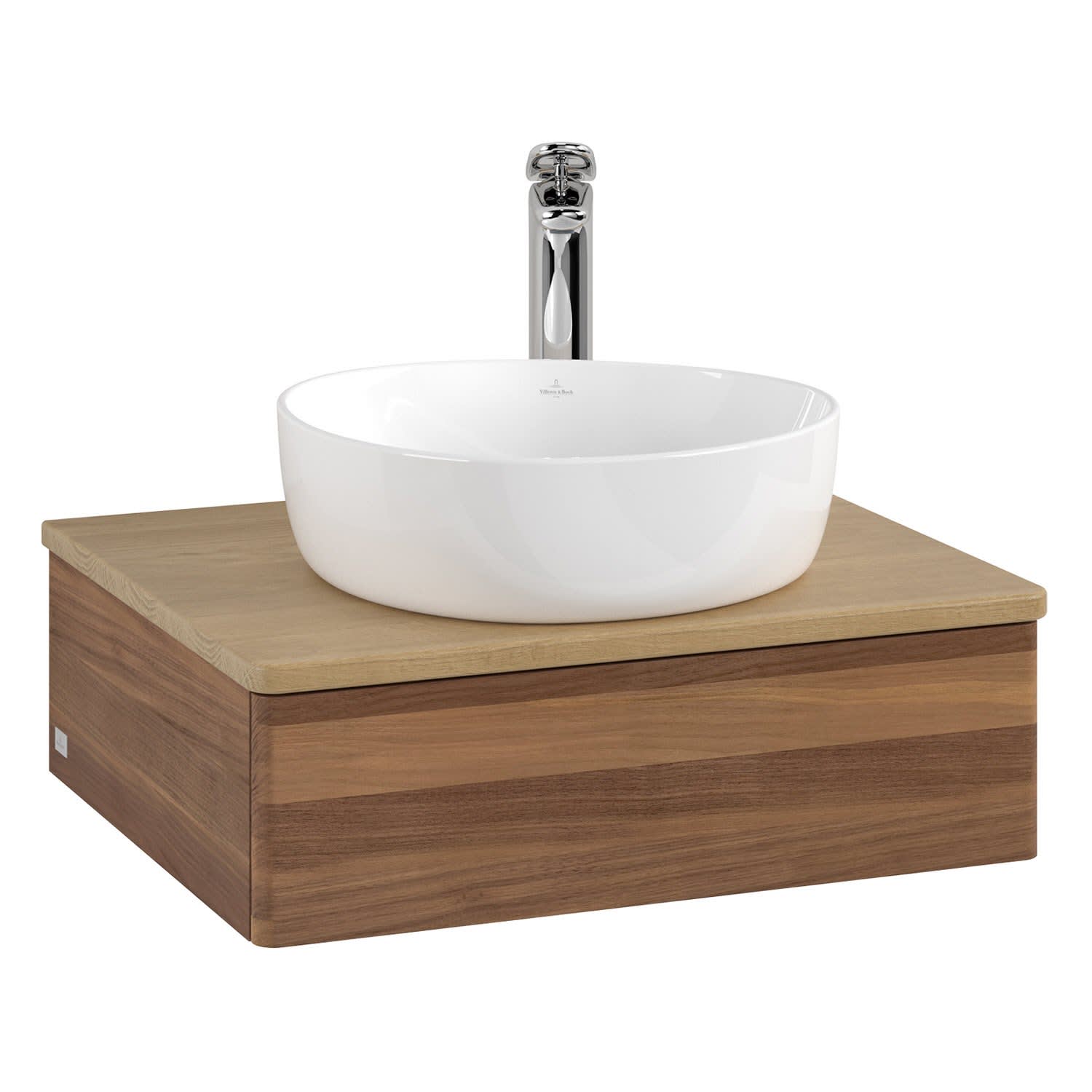 Wenig Platz im Badezimmer und dennoch soll es gemütlich und ordentlich sein? Dann ist der wandhängende Antao Waschtischunterschrank mit seinen sanft abgerundeten Kanten die ideale Lösung. Das geräumige Möbel bietet ausreichend Stauraum für alle nötigen Badutensilien. Zum Öffnen genügt dank der Push-to-Open Funktion ein leichter Druck auf den grifflosen Auszug, der sich dann in seiner vollen Tiefe öffnet. Das garantiert den benötigen Überblick! Praktisch ist auch der integrierte Antirutschboden und die SoftClosing Funktion, die ein Umfallen oder Verrutschen der verstauten Produkte verhindern. Villeroy & Boch hat alles durchdacht! Für eine besonders leichte Pflege sorgt die mehrschichtig deckend lackierte Oberfläche. Bei der Ausführung in Massivholz wird dank des verarbeiteten Massivholzes jedes Möbel zu einem Unikat, das sich durch das lebendige Naturmaterial durch seine einzigartige Struktur und Maserung auszeichnet.