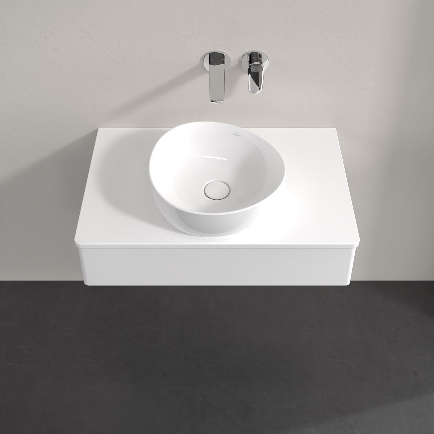 Für diesen Waschbeckenunterschrank stehen Ihnen Aufsatzwaschtische aus verschiedenen Serien zur Verfügung (siehe "Passliste" unter Downloads). Ein ausgewähltes Beispiel finden Sie im Zubehör. Den Waschtisch bitte separat mitbestellen.