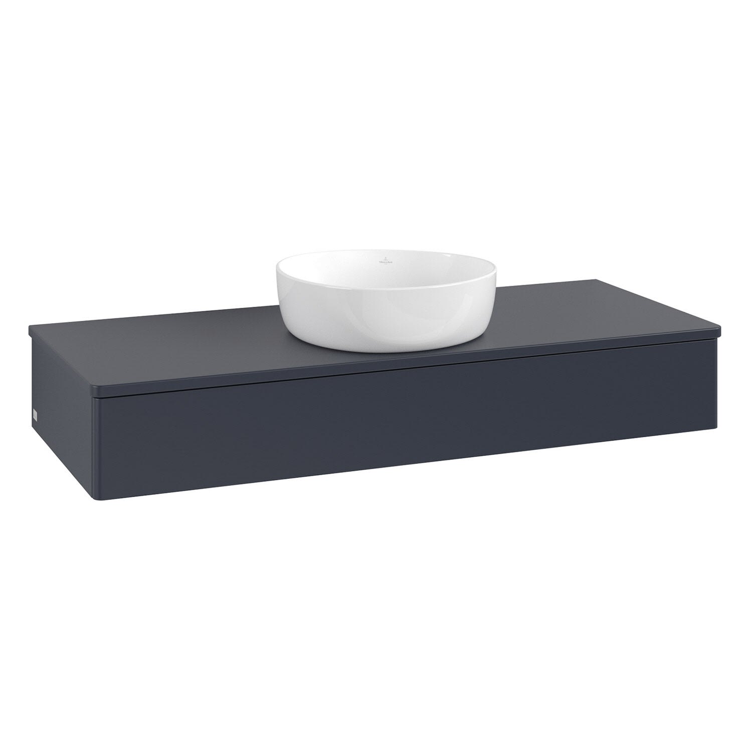 Villeroy & Boch Antao Waschbeckenunterschrank, 120 x 19 cm, 1 Auszug, Front ohne Struktur, mit Hahnloch, für Waschtisch mittig