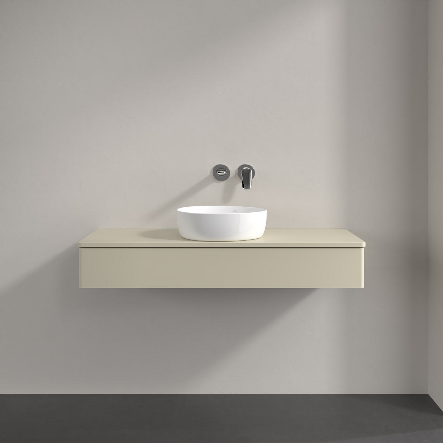 Villeroy & Boch Antao Waschbeckenunterschrank, 120 x 19 cm, 1 Auszug, Front ohne Struktur, mit Hahnloch, für Waschtisch mittig
